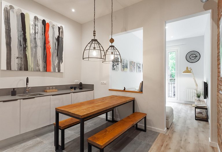 El apartamento está en el centro de Barcelona, en el famoso barrio de Sant Antoni, al lado del espectacular Mercado. Rodeado de hermosos restaurantes, bares, panaderías, supermercados y tiendas de comida gourmet, es por eso que la zona es tan visitada, por su hermoso ambiente barcelonés. Muy cerca se encuentra la Plaza España y el famoso centro comercial en una antigua plaza de toros, se encuentra a 5 minutos a pie. La Fuente Mágica de Montjuic también está muy cerca