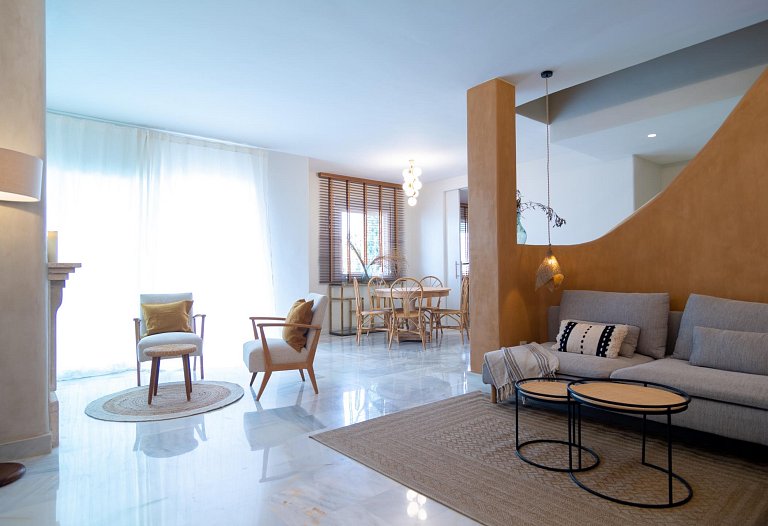 A 3 kilómetros del dúplex se llega a una zona comercial que ofrece una amplia gama de outlets que incluyen arte, ropa, joyas, perfumes, libros, artículos eléctricos y deportivos, bancos, numerosos restaurantes y cafeterías. En Mercadona, SuperSol o Supermercados e Hipermercado Cayetano y Euromarket encontrará productos de alimentación locales e internacionales. Justo en la playa se encuentra el Hotel Guadalmina Spa&Golf Resort de cuatro estrellas, el hotel más famoso de la zona, a sólo 1 kilómetro del dúplex. Desde aquí se puede acceder fácilmente a cuatro restaurantes de alta categoría, incluidos Cocoa, Taray, Acqua y el Beach Club, un lujoso spa interno con circuito termal, varias salas de tratamientos y también un centro de bienestar. Si desea pasar sus vacaciones descansando en una tumbona en la playa, puede alquilar tumbonas y sombrillas directamente en el hotel. La playa de Guadalmina es un lugar popular para relajarse y disfrutar de algunos deportes acuáticos como el jet ski y el buceo.