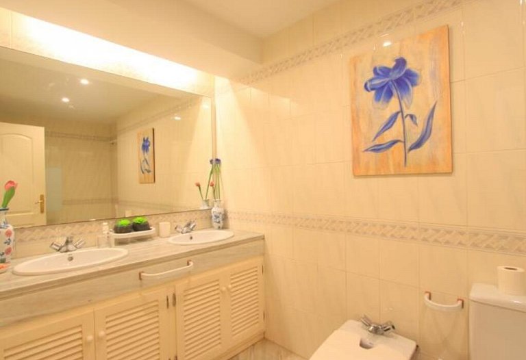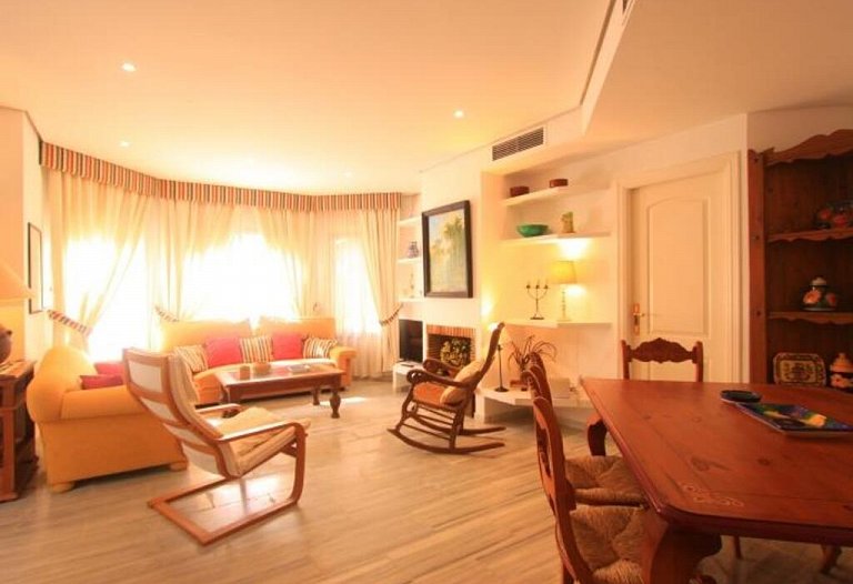 Complejo frente a la playa - Apartamento familiar en la famosa playa dorada. Disfrute de la vida al aire libre en nuestra gran terraza con comedor al aire libre y tumbonas al aire libre. 3 áreas de piscina, incluida la piscina para niños y un increíble jardín tropical, le brindan puro placer al lado de la playa. El parque infantil está justo en frente de la playa. El apartamento tiene 3 dormitorios, 3 baños, todos en suite, se filtra 8 si un niño usa la cama para niños y el bebé usa la cuna, sala de estar con área de TV. Urbanización frente a la playa, apartamento familiar en una de las mejores playas del este de Marbella, la famosa playa dorada. Disfrute de la vida al aire libre en nuestra terraza con aire libre. El complejo tiene 3 áreas de piscina, incluida la piscina para niños y un increíble jardín tropical que le brinda puro placer al lado de la playa. El parque infantil está justo en frente de la playa. El apartamento tiene 3 dormitorios, 3 baños, todos en suite, se filtra 9 si un bebé usa la cuna, de lo contrario pueden quedarse 8 adultos. Sala de estar con TV de pantalla plana y línea de fibra óptica Wifi. La terraza con mesa de comedor al aire libre y acceso directo a la piscina. El apartamento familiar tiene 3 dormitorios, 3 baños, cocina, lavavajillas y lavadora. Está en la planta baja al lado del jardín y la zona de la piscina. Máximo 8 adultos y un bebé pueden dormir dentro. El apartamento está situado justo en la famosa playa dorada en una urbanización muy tranquila con 2 zonas de piscina piscina para niños increíble zona de jardín tropical. Las zonas comunes tienen dos piscinas, piscina para niños, increíble jardín tropical grande con pequeñas cascadas y el parque de juegos para los niños. Perfecto para descansar, caminar por la playa y relajarse en el Beach Club Estrella del mar con spa y gimnasio - varios campos de golf se encuentran en la zona cercana. Tenemos 3 bares de playa y restaurantes justo en la playa y varios más en la zona. Tiendas, supermercados, carnicería, peluquería, farmacia, cafetería están a poca distancia. Playa natural de 7 km de largo justo en frente. El Spa de 5 estrellas "Estrella del Mar", a solo 5 minutos a pie de la playa. El Beachclub Estrella del Mar, está al lado de la Urbanización en la Playa y cuenta con Spa, Gimnasio, Masajes, Piscina Climatizada, baño turco, Wellness, Cursos de Pilates, Yoga. Tenemos un acuerdo con ellos, te dan un 10% de descuento. Muy cerca del centro de Marbella a solo 8 km. Los viernes pequeño mercado Bio en Elviria, a solo 2 km, y los lunes en el mercado de Marbella. IMPORTANTE: LA TARIFA DE LIMPIEZA FINAL DE 120 EUROS SE TIENE QUE PAGAR EN EFECTIVO A LA LLEGADA - CUANDO RESERVAS LA VILLA ACEPTAS ESE TÉRMINO. Damos la bienvenida a los huéspedes y estamos disponibles durante su estancia El famoso Puerto Banús está cerca, a 12 km, con restaurantes, maravillosas playas, boutiques de diseño, chiringuitos, centro comercial, pequeñas boutiques, discotecas. Visite los hermosos Pueblos Blancos de Andalucía como Istán, Casares, Mijas o Ronda.