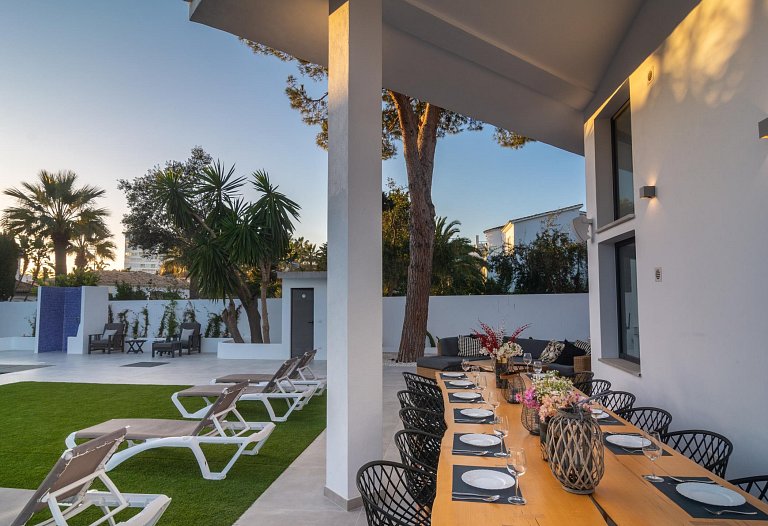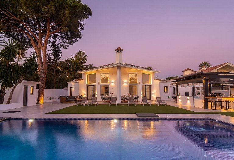 La villa está situada en el exclusivo Las Chapas Playa, un barrio tranquilo de hermosas villas privadas. Toda la zona está asegurada y los guardias de seguridad nocturnos patrullan las calles.