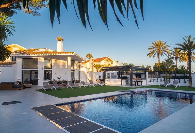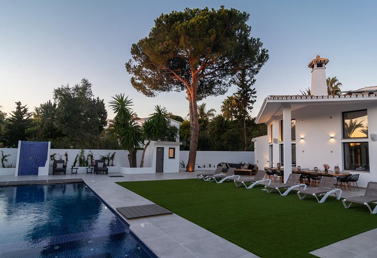 Si está planeando un viaje de golf, esta ubicación es ideal. Hay tres campos de golf de renombre muy cerca de la villa (1,3 km), Marbella Golf Country Club (diseñado por el legendario Robert Trent Jones Senior), Rio Real Golf (Campo de golf de 18 hoyos con club house y centro wellness, considerado en el top 5 de los campos de golf de España) y Santa Clara Golf (campo de golf de 18 hoyos, diseñado por Enrique Canales Busquets). Si eres un apasionado del tenis, a tan solo 700m de la villa tienes el Royal Tennis Club. El Club es conocido por sus pistas de tierra batida, las mejores de la Costa del Sol, donde se puede practicar deporte de raquetas al aire libre, en un entorno natural y tranquilo. Para tus hijos o para una actividad familiar, tenemos el lugar perfecto a solo 4 km, Aventura Amazonia Park, el parque de aventuras más grande de Andalucía. La zona también está muy bien conectada con las ciudades y pueblos cercanos, a solo 10 minutos en coche del centro de Marbella (7 km), a solo 20 minutos en coche (18 km) del famoso Puerto Banús, el polo del lujo y las fiestas, y a 40 minutos del Aeropuerto Internacional de Málaga (46 km).