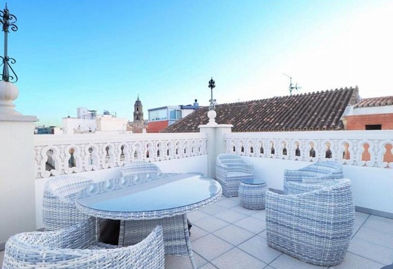 The Exclusive Loft Penthouse is situated in a newly constructed historic building in the heart of Malaga. The city's historic center, where the penthouse is located, is a place of endless wonders. Cultural enthusiasts will be delighted by numerous museums, including Thyssen, Picasso, Pompidou, and many more, showcasing the city's cultural richness and luminance. The historic center is also brimming with an array of restaurants, offering both Mediterranean and international cuisine, along with countless bars and cafes, promising an unforgettable visit to the city. Within a 3-minute walk from the Loft Penthouse, you'll find supermarkets, pharmacies, parking facilities, restaurants, cafes, and the Interactive Museum of Music, where everything can be played. As the crowning touch, the penthouse features a sun-soaked terrace with captivating views of the city's landmarks. This exquisite penthouse boasts three bedrooms, including a loft-style bedroom on the upper floor with an en-suite bathroom, as well as a second bathroom on the lower floor, adjacent to the other two bedrooms. Several balconies offer stunning views of the city center, and the first-floor terrace provides unparalleled vistas, making it an ideal spot to soak up the city's ambiance. On the terrace, you can bask in hours of sunshine, comfortably seated on plush chairs around a spacious table with a sun umbrella to shield you from the heat if needed. Every aspect of the Loft Penthouse has been meticulously designed and decorated with utmost care, ensuring your stay is as pleasant and enjoyable as possible, with the use of premium materials and attention to detail. This exclusive accommodation ranks among the finest residences in the city center. Don't miss the opportunity to experience the city that never sleeps from this exceptional abode.