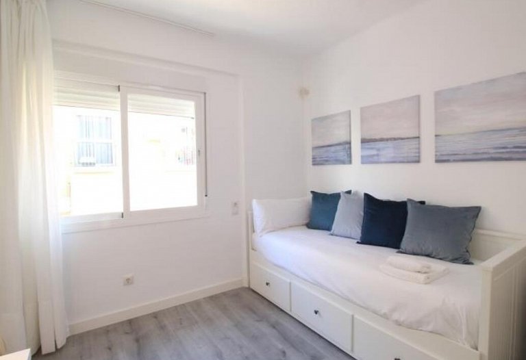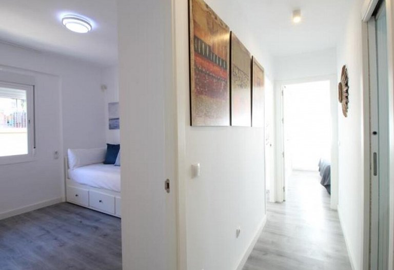 Enjoy a great vacation in one of the best locations in Malaga, Rincon de la Victoria, next to the beach, where you will find a variety of restaurants, beach bars, bars and cafes. The apartment for 4 people, distributed in 2 bedrooms, bathroom with shower, living room, terrace overlooking the sea and kitchen, is located just 150 meters from the beach, a virgin beach, where the promenade still retains a land area, as formerly, but at the same time, the modern promenade has a wide range of restaurants. The town of Rincon de la Victoria, is well known for maintaining a very mild average temperature, where winters are not too cold or during the summer, too warm. Walking from the apartment, you can access a large supermarket just 5 minutes away, the beach just 2 minutes and public transport less than 50 meters. Undoubtedly, it is an apartment for a family or two couples of friends, who wish to enjoy a comfortable stay, close to the beach, with a magnificent terrace for the evenings at any time of the year and with access to public services, just outside the apartment.