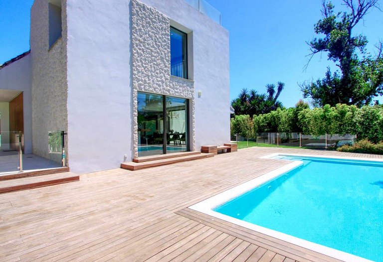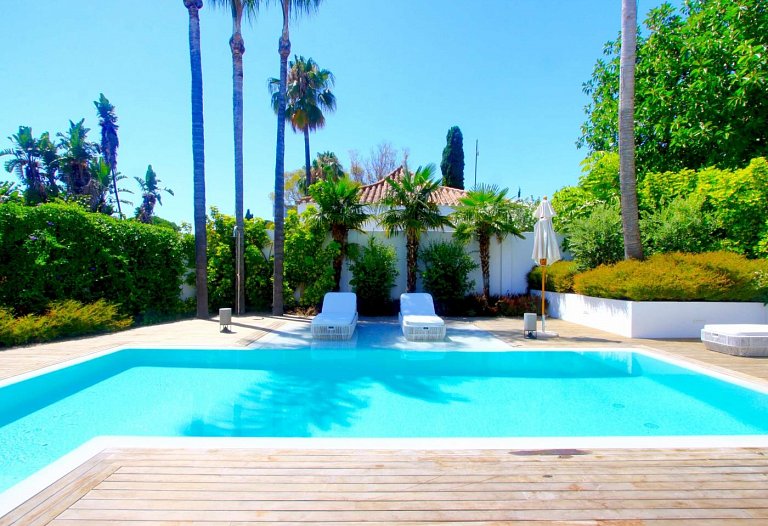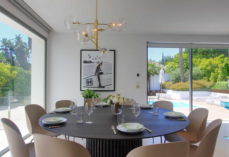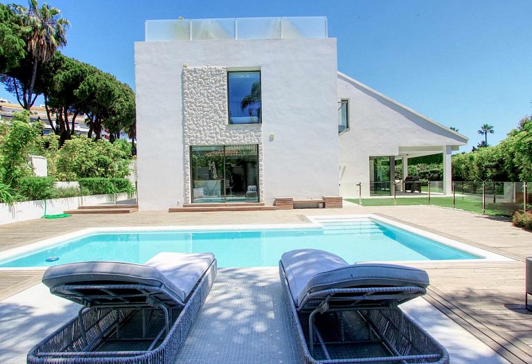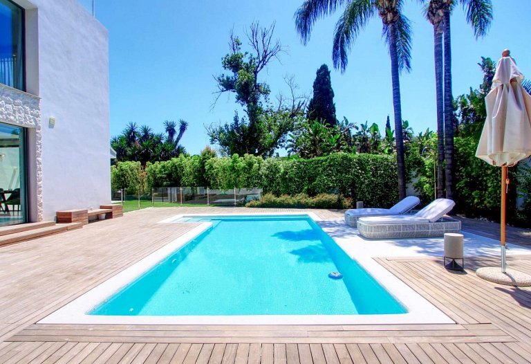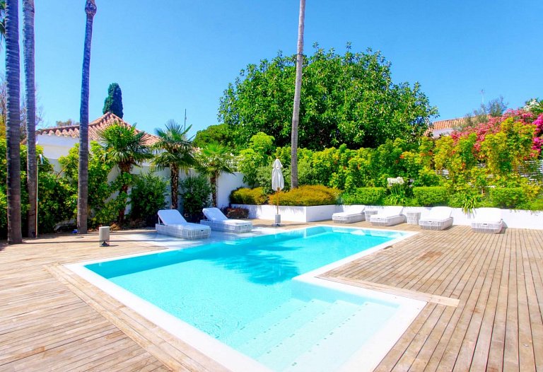 Descubra el epítome del lujo en nuestra exquisita Villa Moderna, ubicada en la ubicación privilegiada de Puerto Banús Beachside. Esta impresionante villa de diseño de 5 dormitorios ofrece un jardín privado y seguro con piscina climatizada y fantásticas instalaciones de comedor y entretenimiento para hasta 10 personas. Situado en un prestigioso complejo semicerrado, este refugio ofrece el entorno perfecto para que las familias se relajen y disfruten de la tranquilidad sin dejar de estar a pocos minutos de las modernas playas, tiendas y restaurantes del famoso puerto deportivo de Puerto Banús. Disfrutará de un simple paseo de 2 minutos hasta la playa a través de un acceso privado cerrado. La villa ha sido meticulosamente reconstruida con los más altos estándares de lujo, mostrando comodidades de última generación en sus dos niveles. En la planta baja, la sala de estar, el comedor y la cocina de diseño de planta abierta exudan un lujo suntuoso, inundado de luz natural. Grandes ventanales de piso a techo rodean la habitación, fusionando a la perfección los espacios interiores y exteriores. La terraza cubierta amplía la sala de estar, con una barbacoa Webber, una zona de estar tipo lounge para hasta 8 personas y una mesa de comedor exterior para 10. La zona de la terraza de la piscina cerrada ofrece una ducha exterior y 6 tumbonas, lo que garantiza tanto la relajación como la seguridad de los niños pequeños. La impresionante cocina de diseño "Gaggenau" con una barra para sentarse y un conjunto completo de electrodomésticos modernos se convierte en un centro neurálgico para preparar deliciosas comidas mientras se mantiene conectado con familiares y amigos. Disfrute de la iluminación ambiental y un sistema de sonido envolvente "Sonas" incorporado en toda la propiedad, controlable a través de un sistema de domótica inteligente. La planta baja también alberga dos habitaciones dobles y un baño grande con una amplia ducha de lluvia a ras de suelo. En el primer piso, encontrará tres habitaciones dobles más, cada una con baño privado, y dos de ellas con terrazas privadas. El dormitorio principal es un verdadero punto culminante, con un impresionante baño de planta abierta con un gran jacuzzi interior y una terraza privada que conduce a una sauna finlandesa completa. Esta impresionante villa cuenta con una variedad de características adicionales, que incluyen calefacción por suelo radiante, aire acondicionado central, persianas eléctricas y un garaje doble con paredes de vidrio que puede acomodar 1 automóvil de lujo, visible desde la villa, con puertas con control remoto. Tranquila, segura y lujosa, esta propiedad es la opción perfecta para unas vacaciones familiares, con fácil acceso a las vibrantes playas y la vida nocturna de Puerto Banús. Para mejorar su estadía de lujo, ofrecemos varios servicios adicionales como alquiler de autos de lujo, alquiler de barcos, servicio de helicóptero, servicio de limusina, chofer privado y chef privado. Tenga en cuenta que la villa está reservada para familias y parejas, y le solicitamos amablemente que no se permitan grupos de fiestas o eventos y no aceptamos reservas de grupos del mismo sexo. Esta propiedad verdaderamente única lo espera, lista para crear recuerdos inolvidables para usted y sus seres queridos.