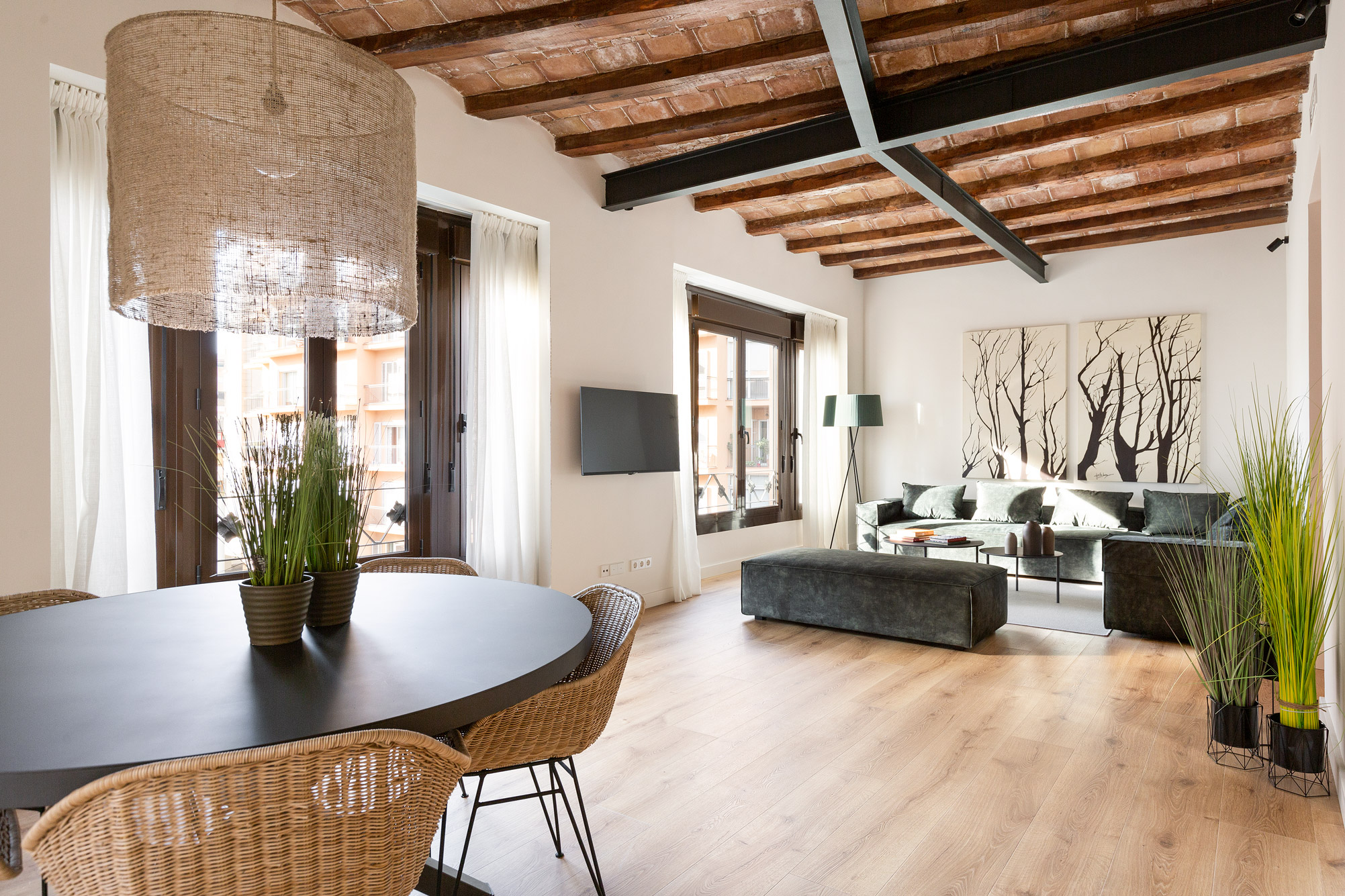 To get to the apartment is relatively easy from the airport. There are a few options. 1) Take a taxi. A normal taxi with 4 seats costs about 30 euros. 2) Aerobus. Buy a ticket, approximately 5 euro pp. Once you have arrived at Placa de Catalunya by Aerobus (The end of the line). Go left once you are getting out of the Aerobus and walk towards (looking towards the Tibidabo mountain) Passeig de Gracia Metro, which is two blocks away from Placa de Catalunya (10 minutes by foot). Take the green line (L3) metro and get out at the next stop "Fontana". This metro station is a short walk from the apartment. 3) By train R2N (FAST & CHEAP). Offboard at Passeig de Gracia. From there, you can jump on a taxi, metro or bus