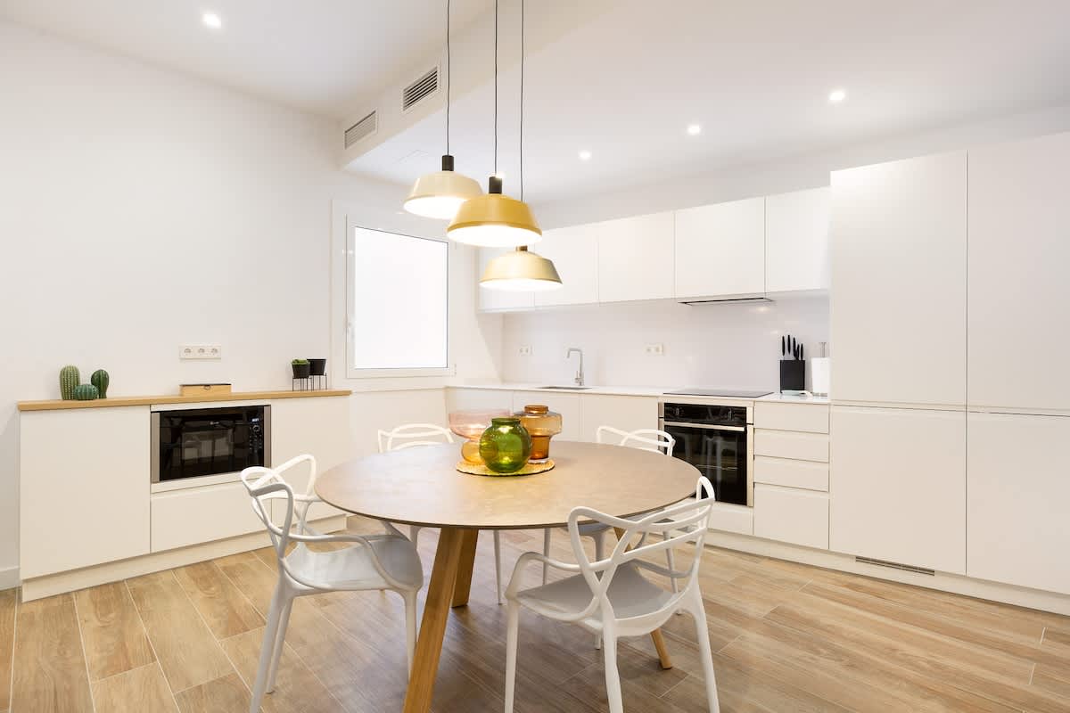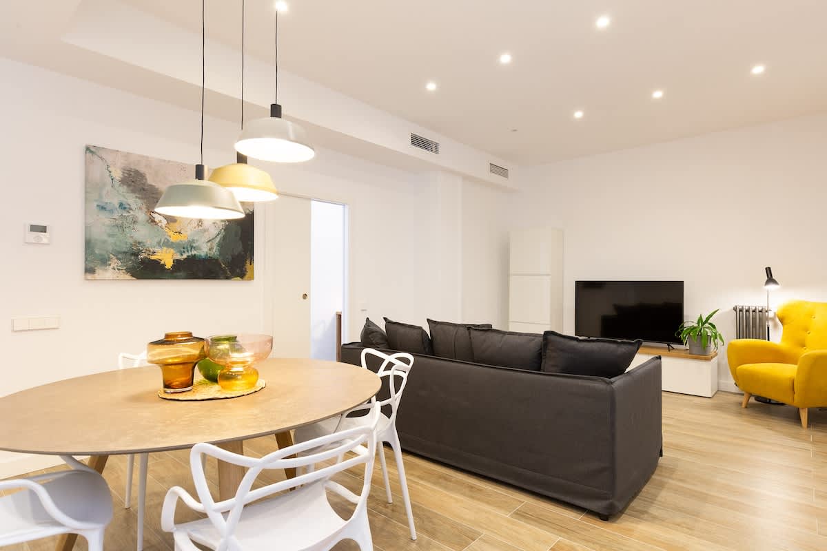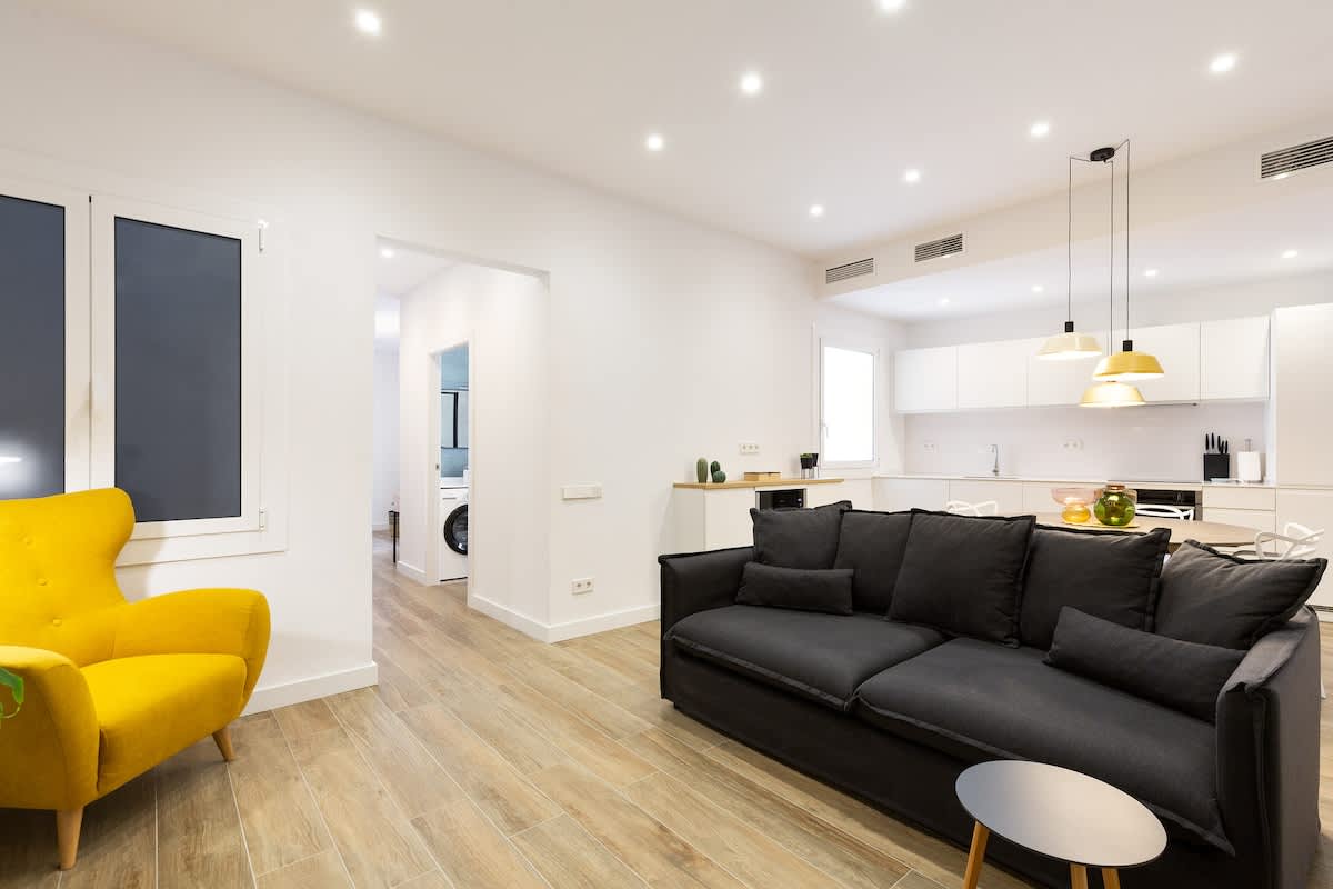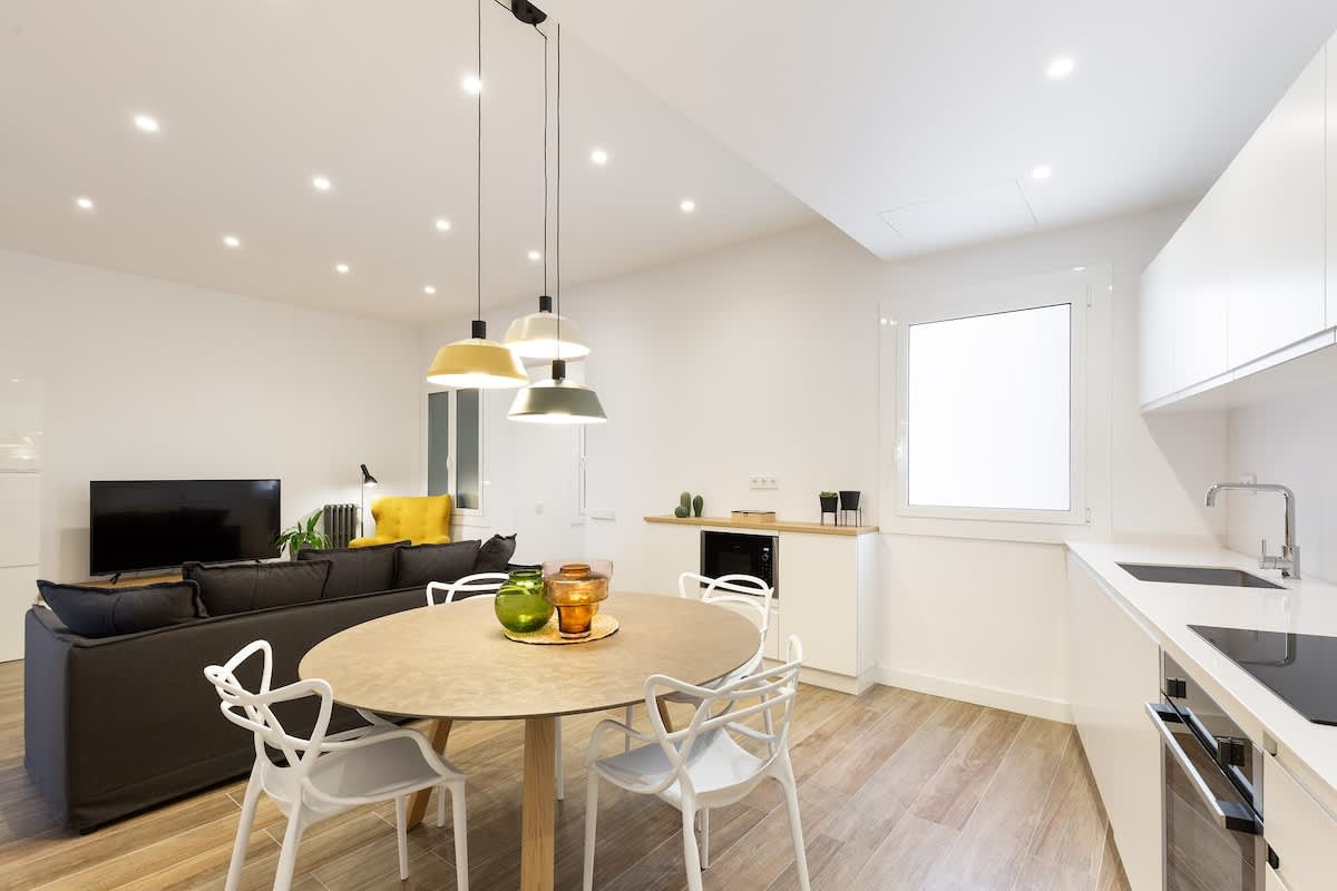 Beautiful, specious apartments for monthly rent. This apartments is located in the heart of Barcelona. Therefore everything is within walking distance! This newly renovated apartment is suitable for 4 people and features an open kitchen which is attached to the dining and living area. The apartment also has two bright bedrooms with both a double bed and a beautiful bathroom.