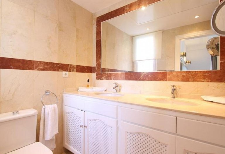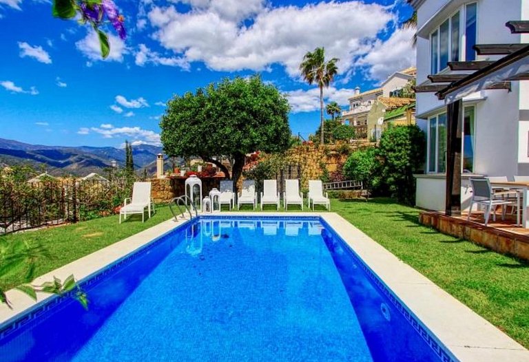 Villa panorámica con piscina, vistas al mar, lago y montaña. Marbella- Puerto Banús Casa entera | Villa | 8 huéspedes | 3 dormitorios | 3 baños, cocina abierta con terraza al aire libre, sala de estar junto a la gran terraza con salón y comedor frente a la piscina. Si busca relajación pura y vacaciones tranquilas en la cima de la colina en un paraíso de montaña y con vistas al lago, el mar y las montañas, nuestra villa es el lugar adecuado. Increíble zona de relax y comedor al aire libre. La piscina (calefacción a petición) es el punto culminante para relajarse y por la noche un ambiente romántico y una increíble vista panorámica. La villa ha sido recientemente reformada en enero de 2016 con un estilo moderno. A 10 minutos de Marbella y a 10 minutos de Puerto Banús. Situado en Sierra Blanca Country Club. Supermercado a 6 minutos en coche. La villa tiene un interior de lujo, una elegante cocina totalmente equipada con comedor, una elegante sala de estar con una gran TV LED de pantalla plana y una zona de chimenea. Tenemos dos dormitorios principales con baño en suite y un dormitorio con baño separado. Gran salón abierto con acceso a la terraza. Disponemos de 4 tumbonas en la piscina. Disfrute de la zona de estar directamente en la piscina con una increíble vista panorámica en un entorno de puro silencio. Composición: cocina, 3 dormitorios, 3 baños, salón, 2 terrazas. Servicios: ropa de cama y toallas y toallas de playa, terrazas, aire acondicionado, calefacción, piscina, internet inalámbrico gratuito, cuna gratuita bajo petición, aparcamiento gratuito, 3x cama doble, 2 camas plegables adicionales bajo petición, apto para familias / niños, jardín (privado), vista al jardín, chef proporcionado, silla de bebé bajo petición, solo familias o parejas, coche necesario, máquina de café expreso, licuadora, comedor, armarios, vitrocerámica, cocina, hervidor eléctrico, frigorífico / congelador, cafetera, lavavajillas, utensilios de cocina, vajilla y cubertería, cuna Damos la bienvenida a los huéspedes y estamos disponibles durante su estancia. El famoso Puerto Banús está cerca, a 6 km, con restaurantes, maravillosas playas, boutiques de diseño, bares de playa, centro comercial, pequeñas boutiques, discotecas. Visita los bonitos Pueblos Blancos de Andalucía como Istán, Casares, Mijas o Ronda.