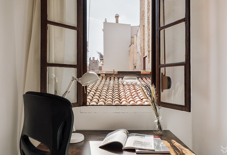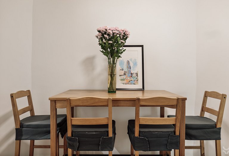Large windows bring in plenty of natural light, giving the apartement an open and airy feel throughout the day. There is also a dedicated workspace by the window, ideal for guests who wish to read, plan their trip, or work remotely.