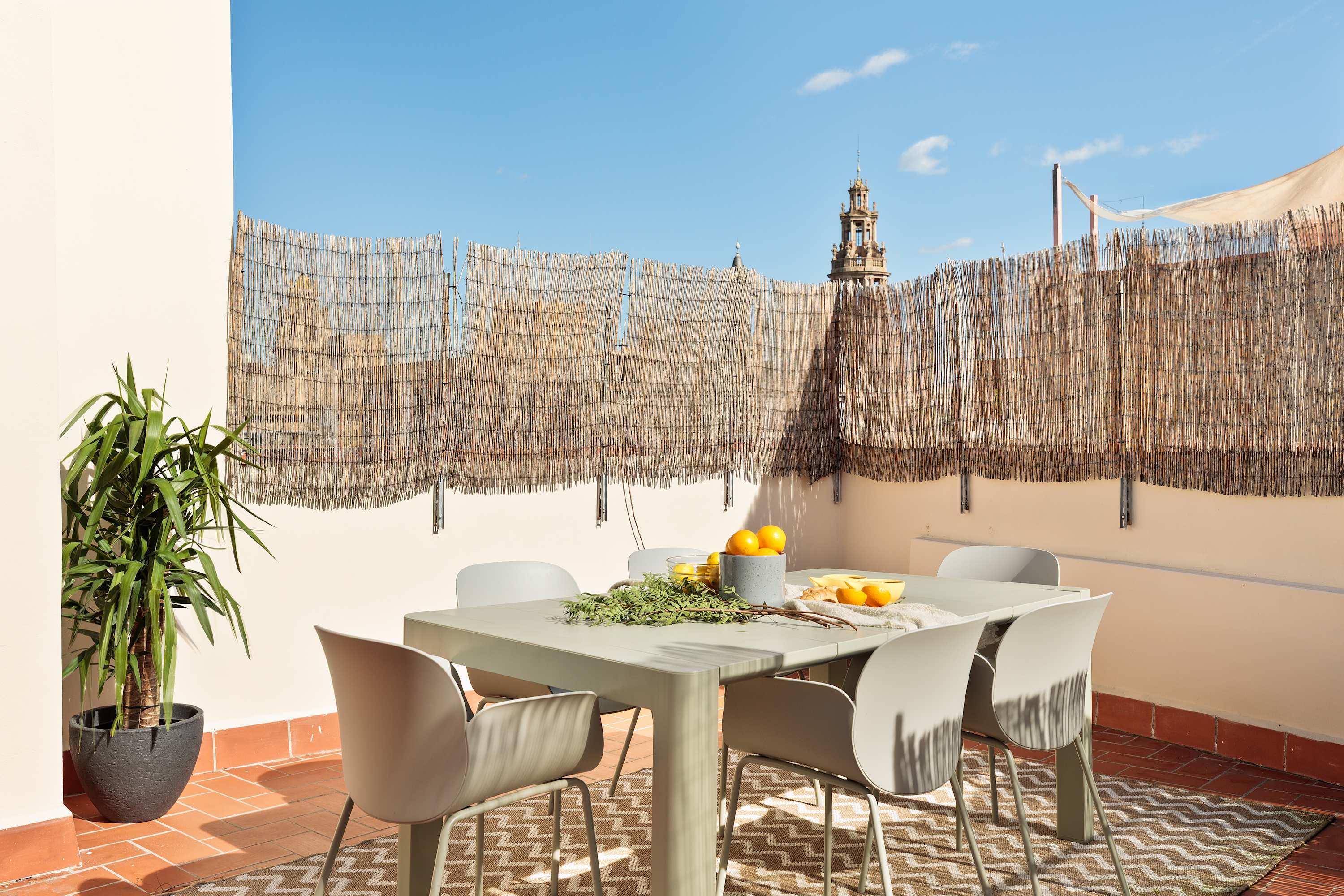 Luxury two bedroom spacious apartment with 2 large bathrooms and 2 living rooms one with a fully equipped kitchen. Each living room has a 2 person sofa bed and the apartment is served by a lift and has access to a large roof terrace that is shared between 5 apartments.