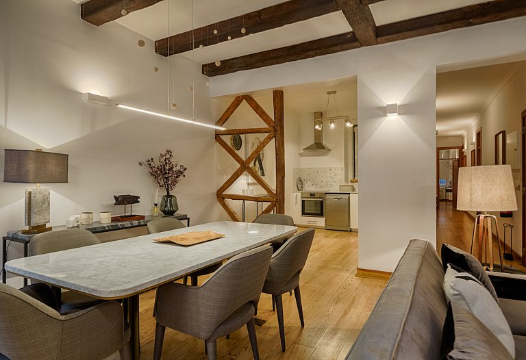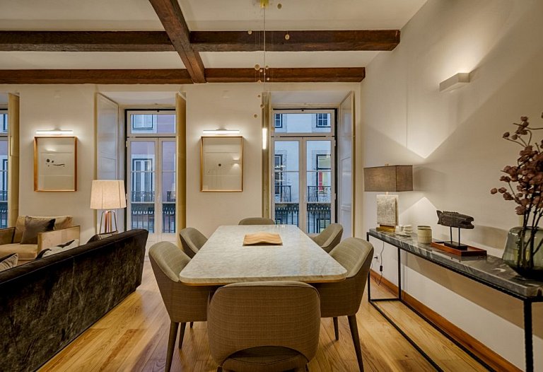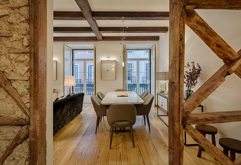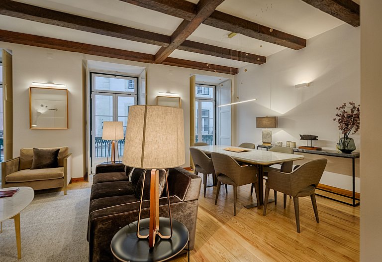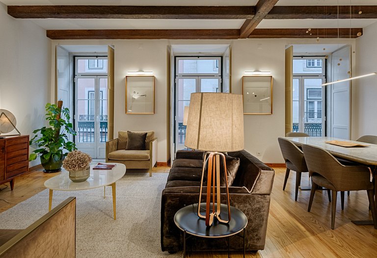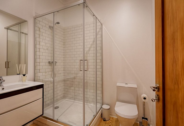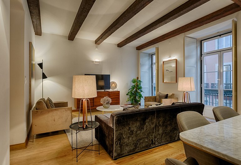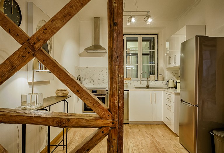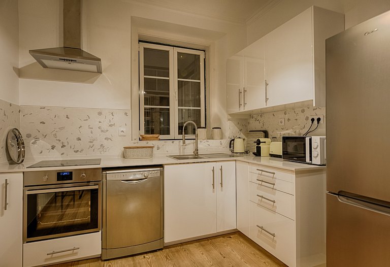 The apartment consists of a beautiful living and dining room with an unpretentious but tasteful decoration. Again, the old and new are meeting together here. The areas are large, with plenty of natural light. The access to the 3 bedrooms is made through a hallway that goes from one side to the other side of the house. The 3-double bedroom are comfortable and one is en suite, having a second bathroom to serve the other guests. If you prefer to prepare your own meals, the kitchen it’s fully equipped, but it will be difficult with the wide range of restaurants especially Fado and traditional Portuguese cuisine that Chiado and Bairro Alto features. You can visit the surroundings, you are right in the center. Chiado, Baixa, Rossio and Avenida da Liberdade and the main attractions of the city at a walking distance.