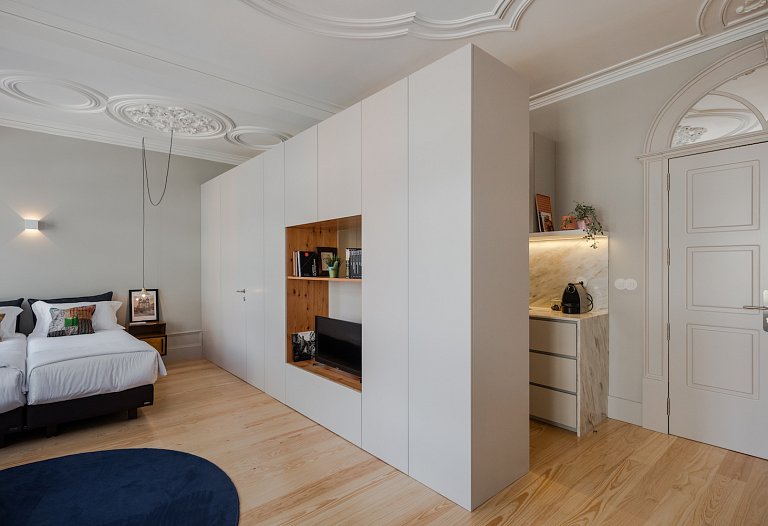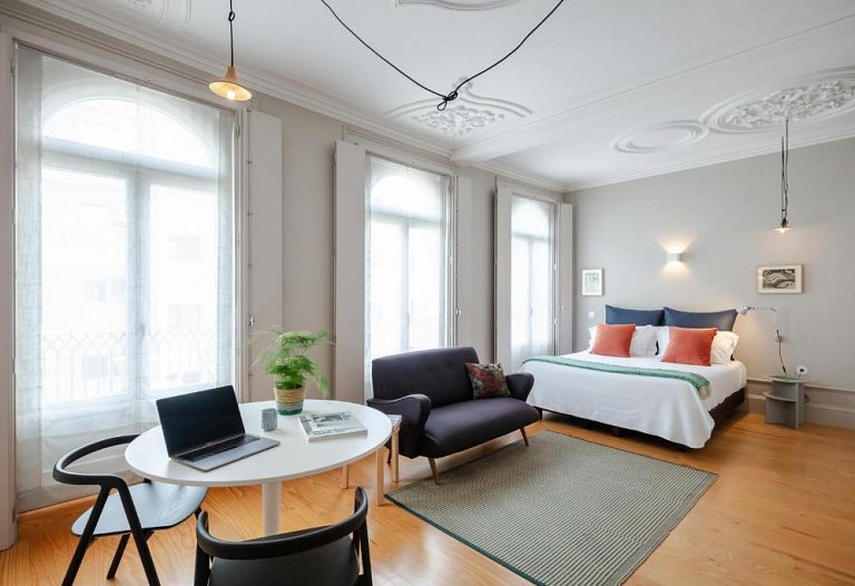 This lovely 2nd floor studio, with a big bathroom, kitchenette and huge balcony overlooking Rua da Boavista, is a fine place to call home as it offers elegant and modern functionality combined with the traditional architecture typical from the bourgeois houses of the XIX century.