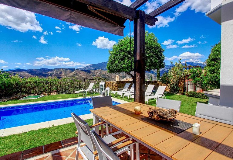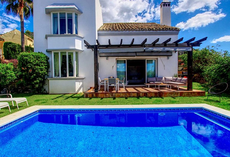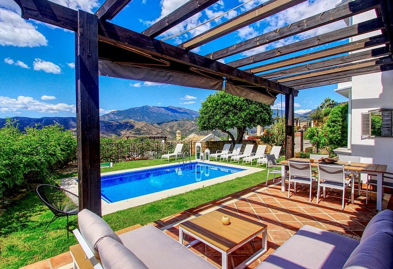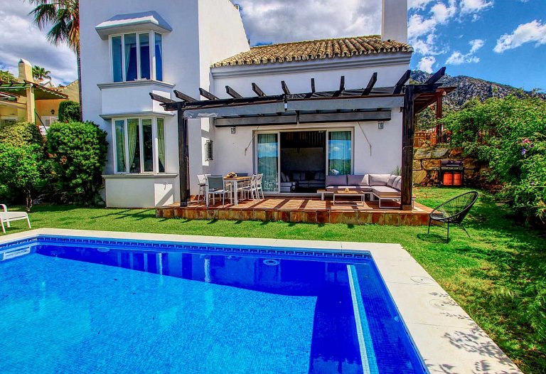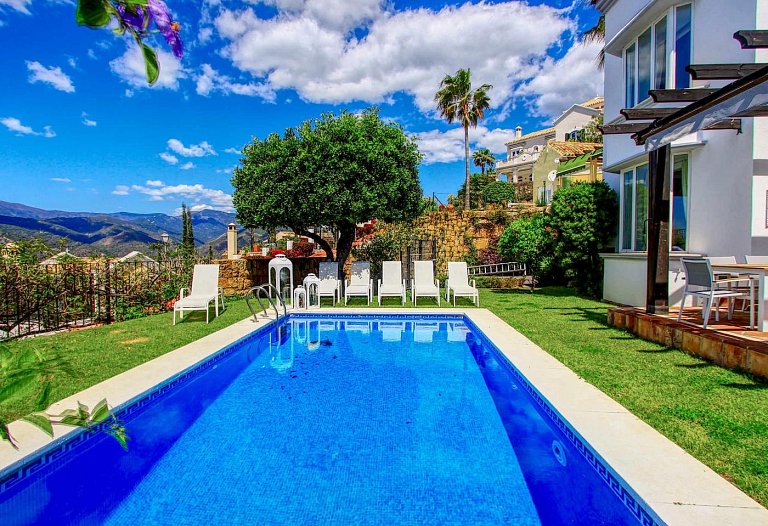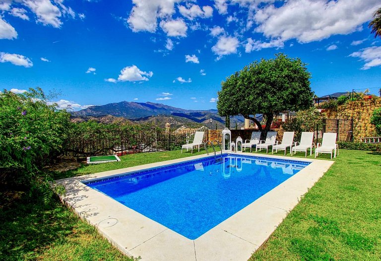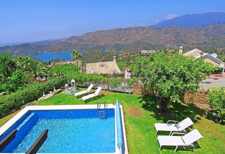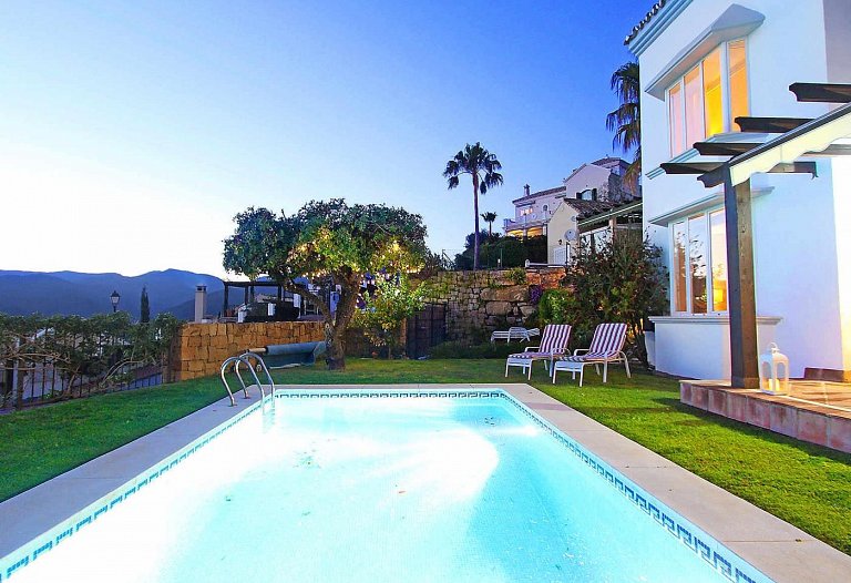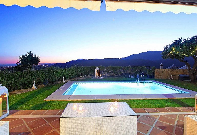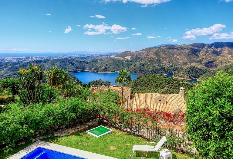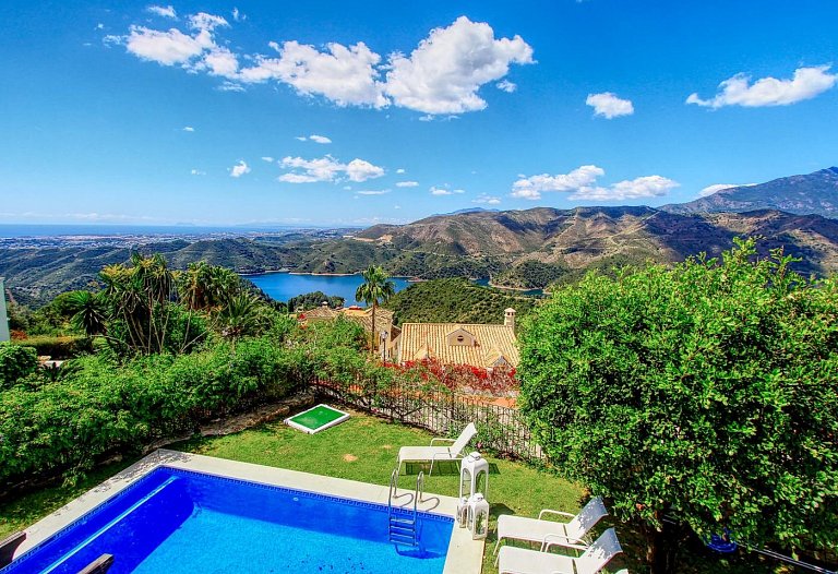 Panorama Villa with pool,Sea, Lake and Mountain view . Marbella- Puerto Banus Entire home | Villa| 8 Guests|3 Bedrooms|3 Baths, open Kitchen with outdoor Terrace , Living room next to the big terrace with lounge and dining area in front of the pool. If you look for pure relaxation and quiet Holiday on the top of the hill in mountain paradise and over viewing the lake, sea and mountains, than our villa is the right spot. Amazing outdoor relax and dining area. The pool ( heating by request) is the high light to relax and in the evening romantic atmosphere and an amazing panorama view . The villa is newly refurbished in jan 2016 to modern style .10 mins to Marbella and 10 mins to puerto Banus. Situated in Sierra Blanca Country Club. Supermarket 6 min drive. The villa has luxury interior elegant fully equipped kitchen with dining area – stylish living room with large flat screen LED TV and open fire area. We have two Master bedroom with ensuite bathroom and one bedroom with separate bathroom. Large open Living room with access to the terrace. We have 4 sunbeds on the pool. Enjoy the lounge area directly on the pool with an amazing panorama view in pure silence environment. Composition: kitchen, 3x bedroom, 3x bathroom, living room, 2 terraces . Amenities: bed linen & towels and beach towels , terraces, air conditioning, heating, swimming pool, free wireless internet, free cot on request, free parking , 3x double bed, 2 extra folding beds on request, family/kids friendly, garden (private), garden view, chef provided, baby chair on request, families or couples only, car necessary, espresso-machine, blender, dining room, cupboards, cooking hob, cooker, electric kettle, fridge / freezer, coffee maker, dishwasher, cookware & kitchen utensils, crockery & cutlery, baby cot We are welcome the guests and we are available during their stay The famous Puerto Banus is nearby, 6 km away, with restaurants, wonderful beaches , Designer Boutiques Beach Bars, Shopping Center, Little Boutiques, Discos. Visit the beautiful White Villages of Andalusia like Istan, Casares, Mijas or Ronda.