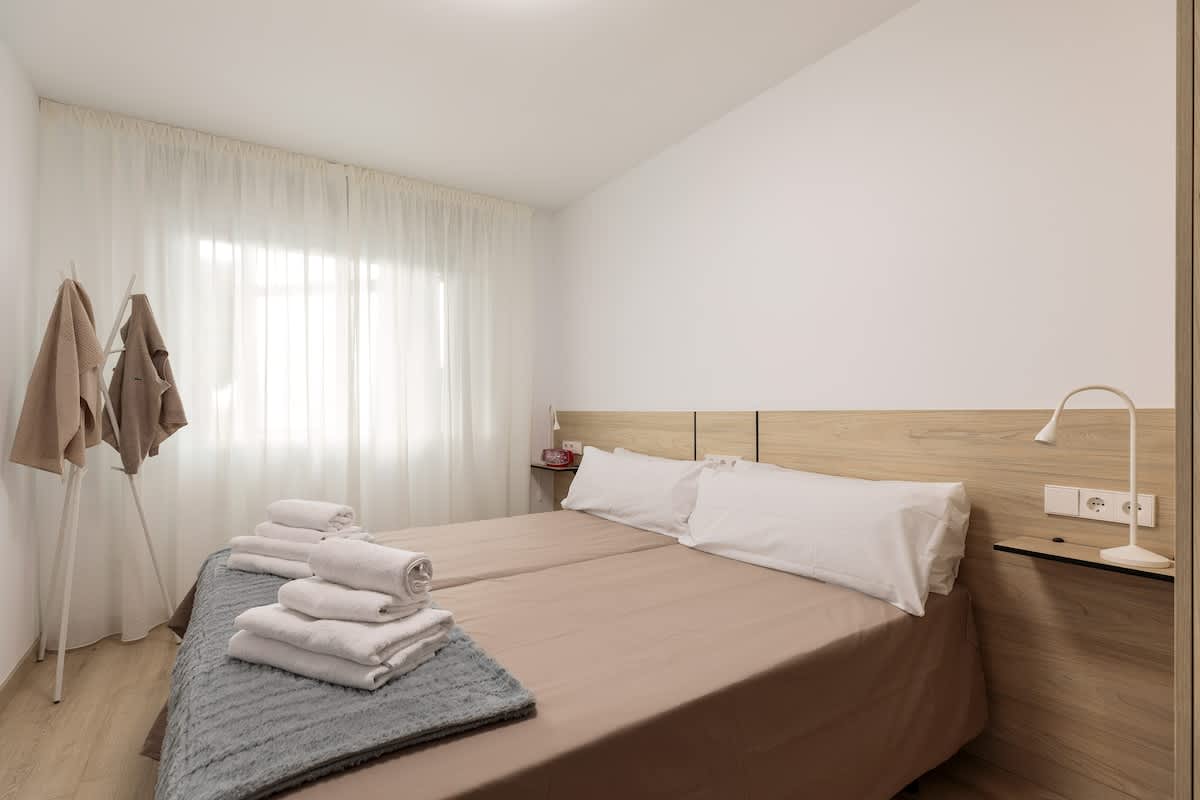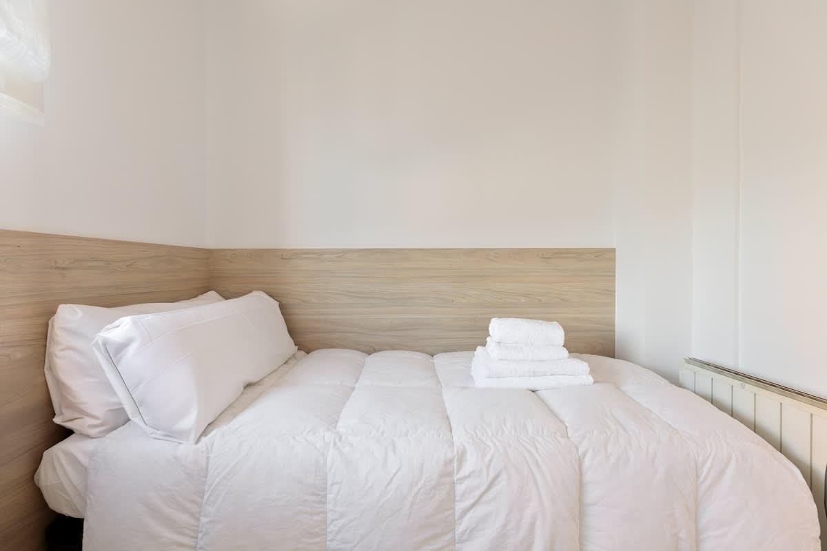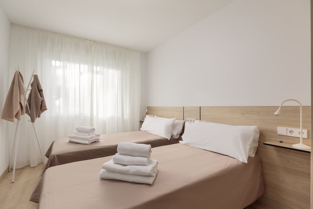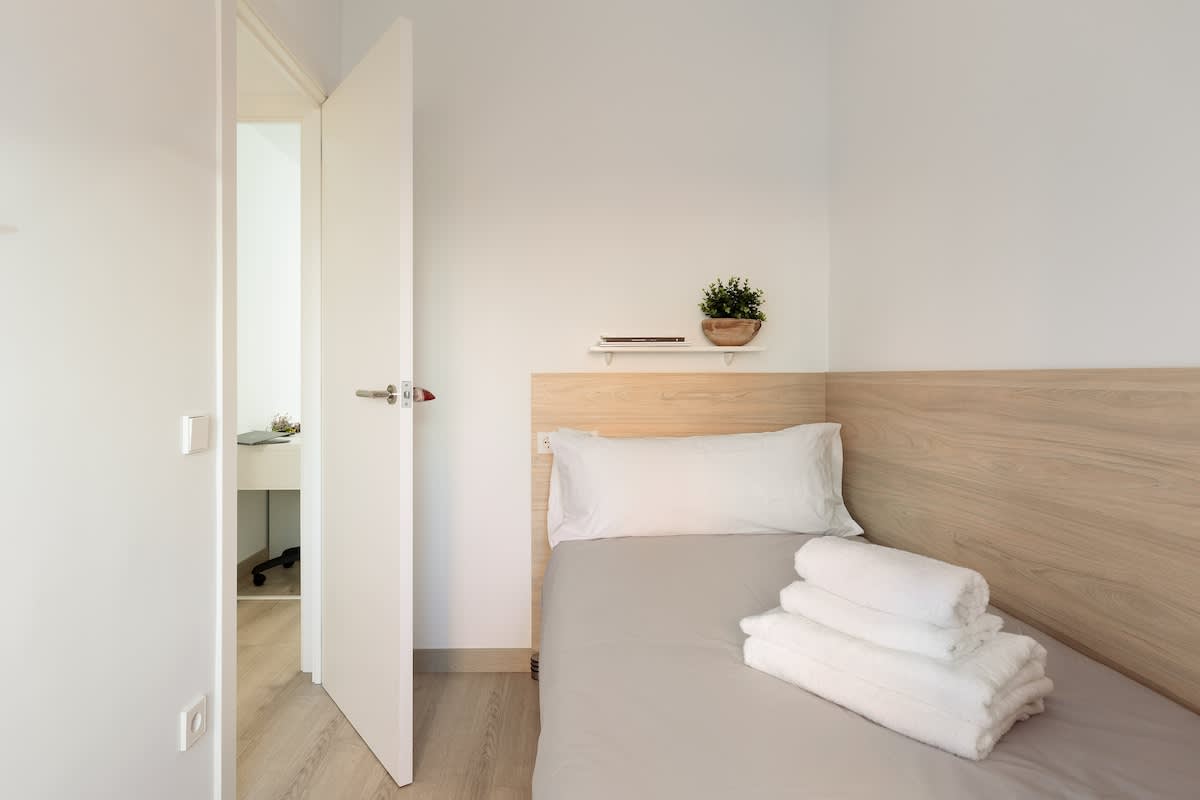Newly refurbished apartment in Sants-Montjuic close to public transport. In this apartment there are 3 bedrooms, with one single bed in the first and second room, and two single beds in the third room. It also offers a nice bathroom, kitchen and living room with enough space for 4 people.