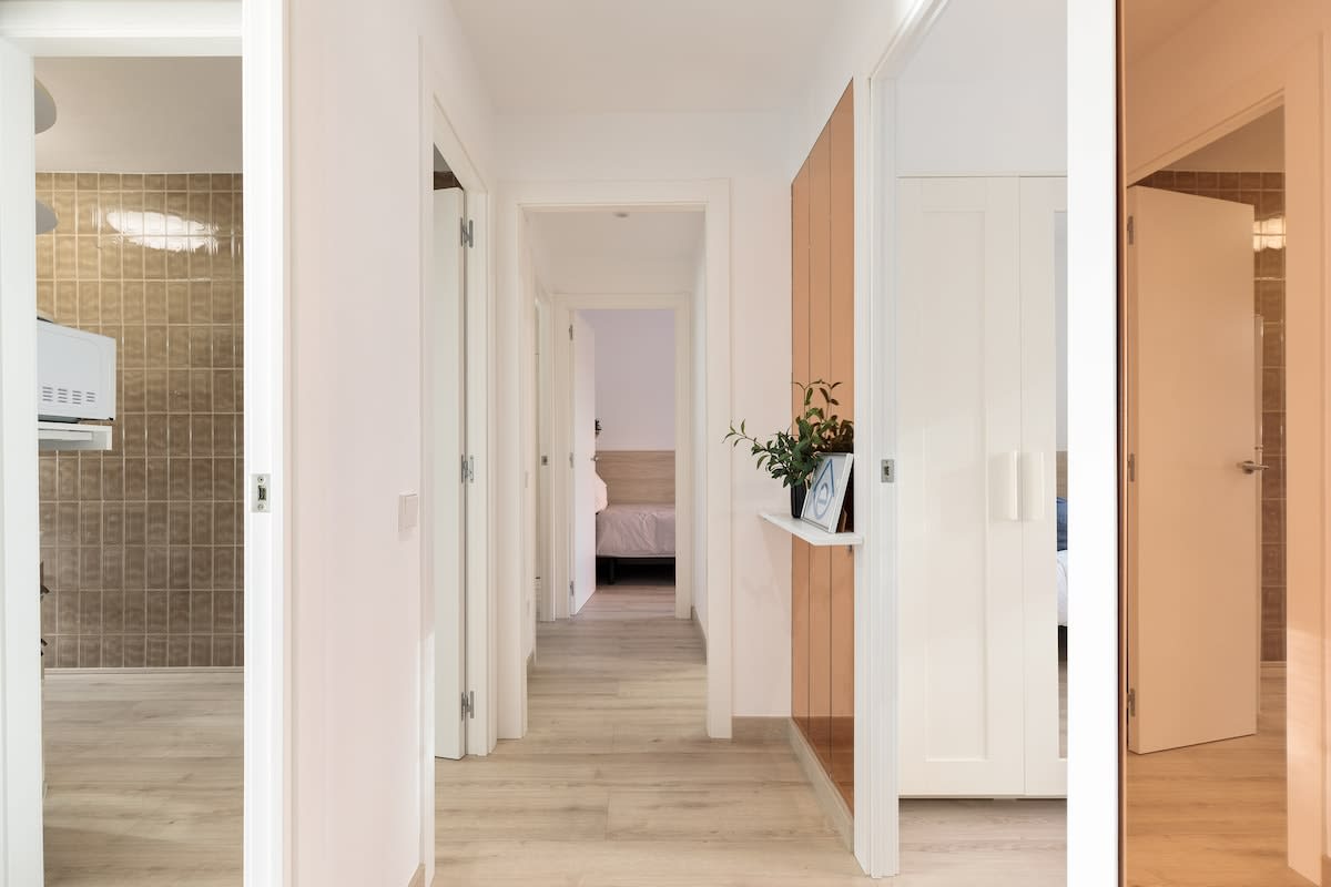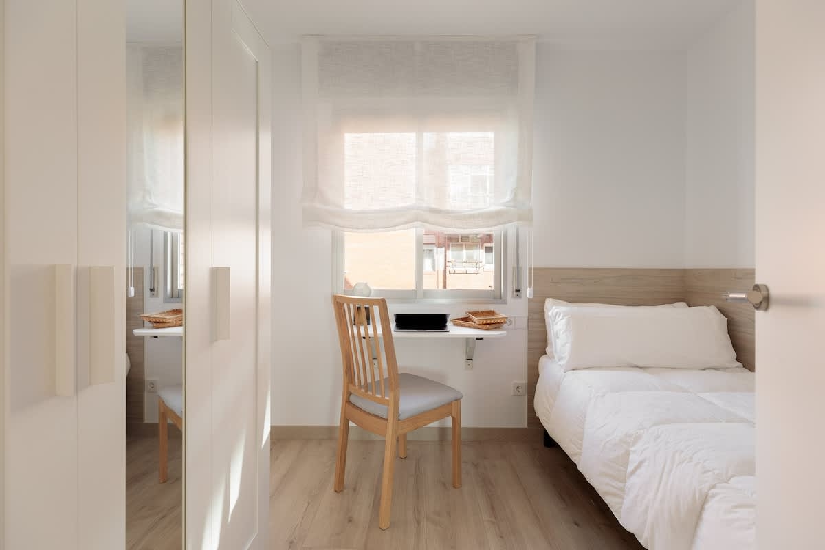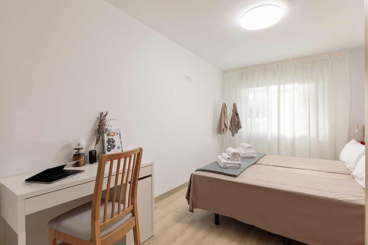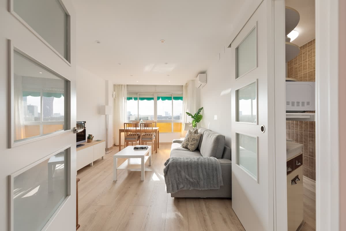 Newly refurbished apartment in Sants-Montjuic close to public transport. In this apartment there are 3 bedrooms, with one single bed in the first and second room, and two single beds in the third room. It also offers a nice bathroom, kitchen and living room with enough space for 4 people.