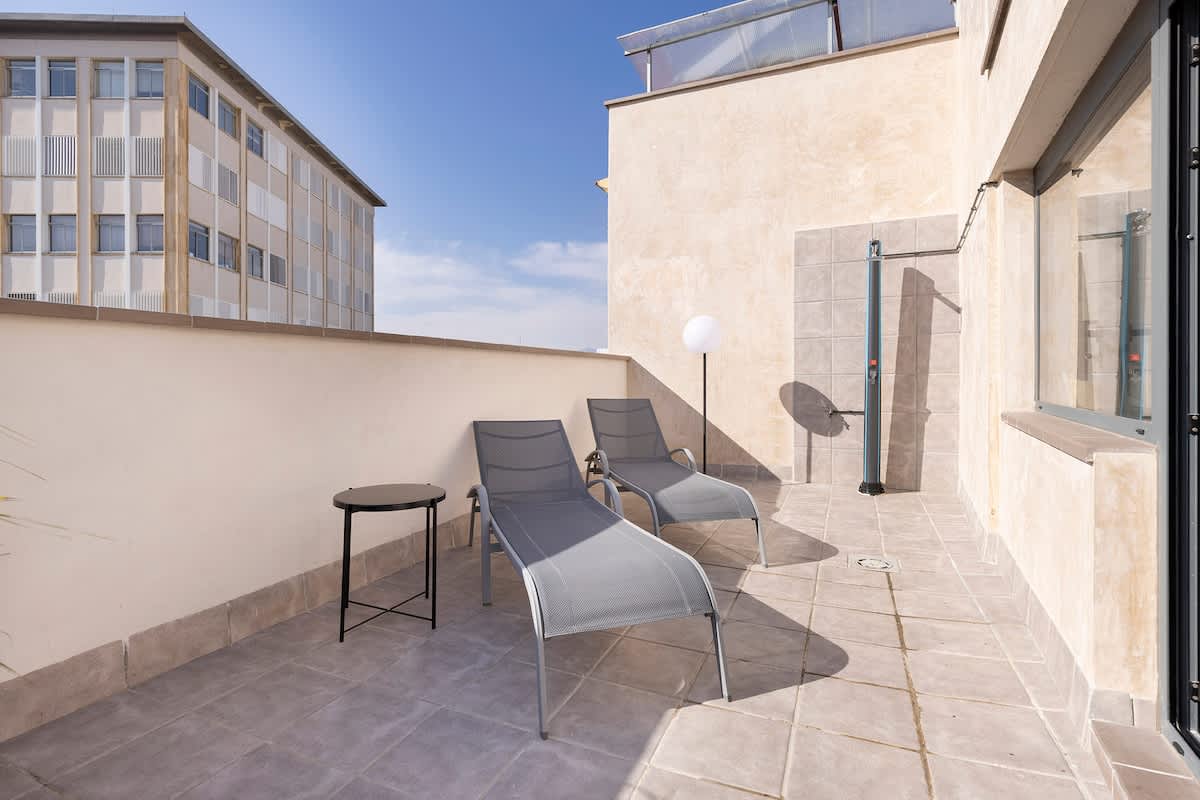 The apartment has a roof terrace where you can escape the busy city life and enjoy a beautiful view.