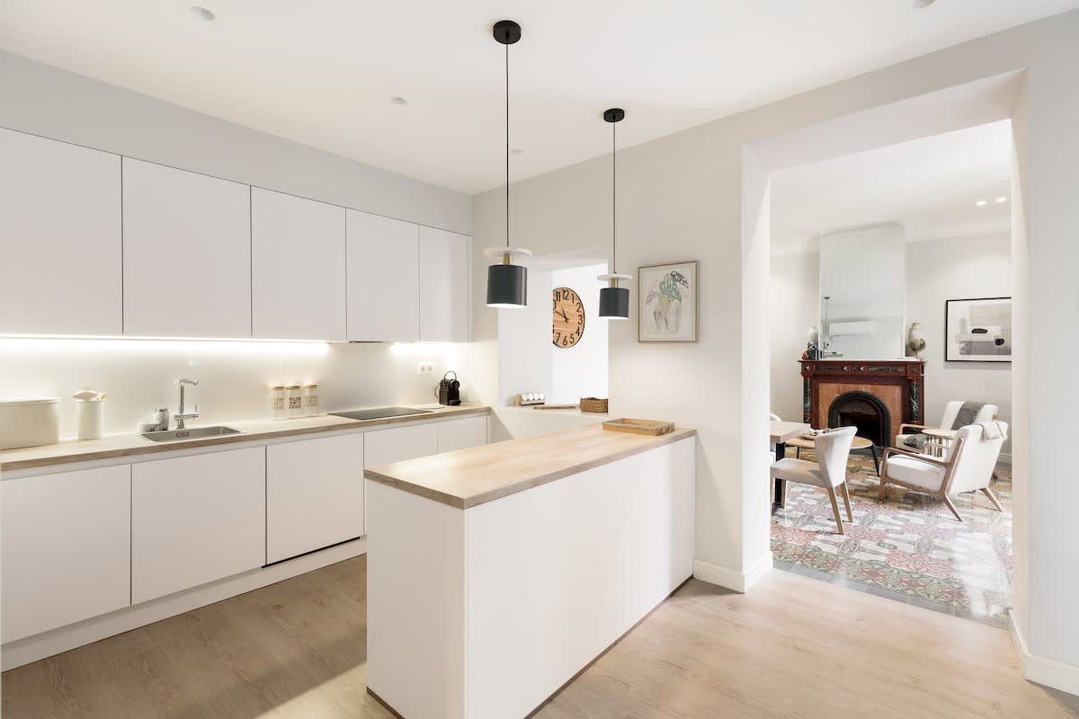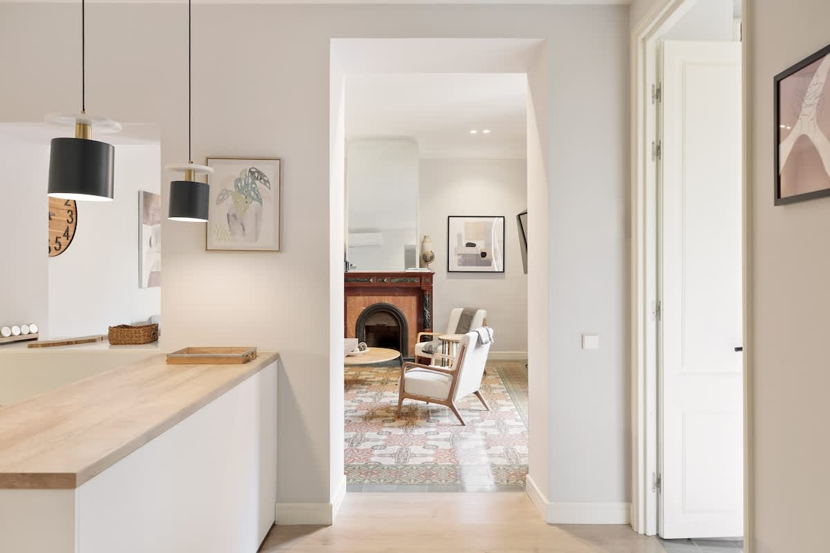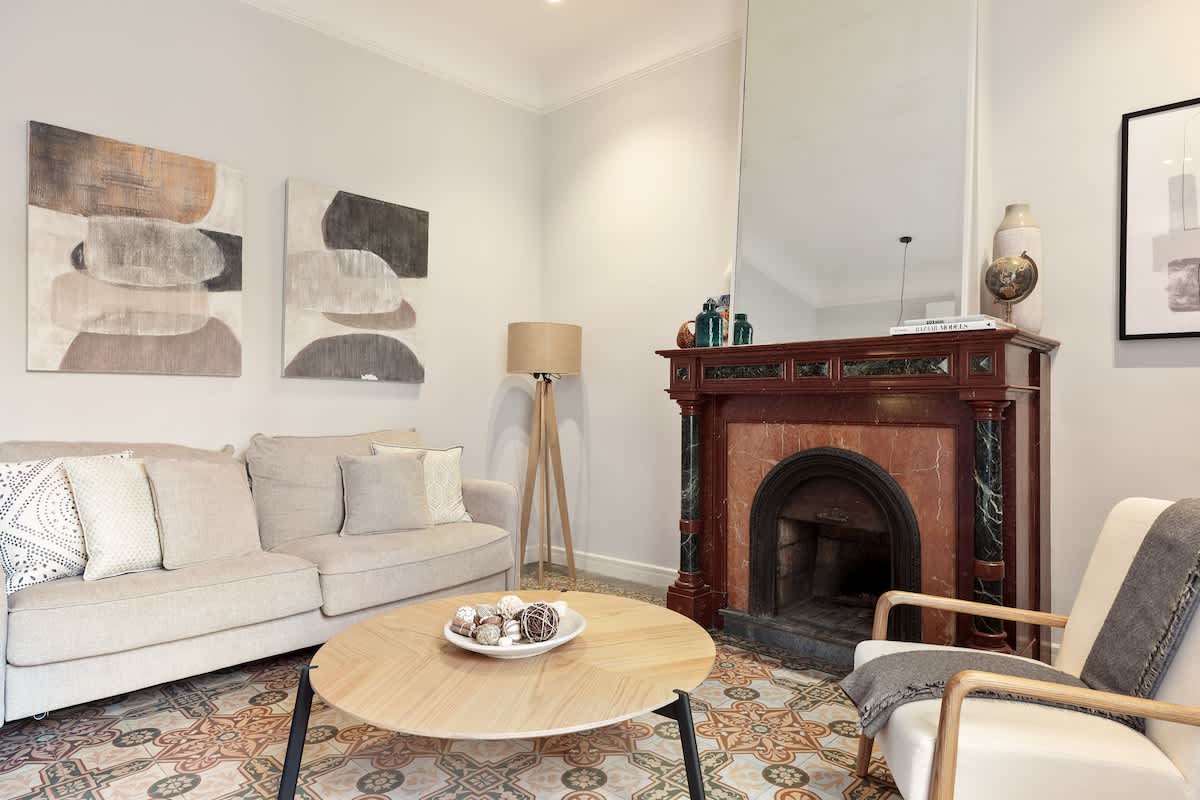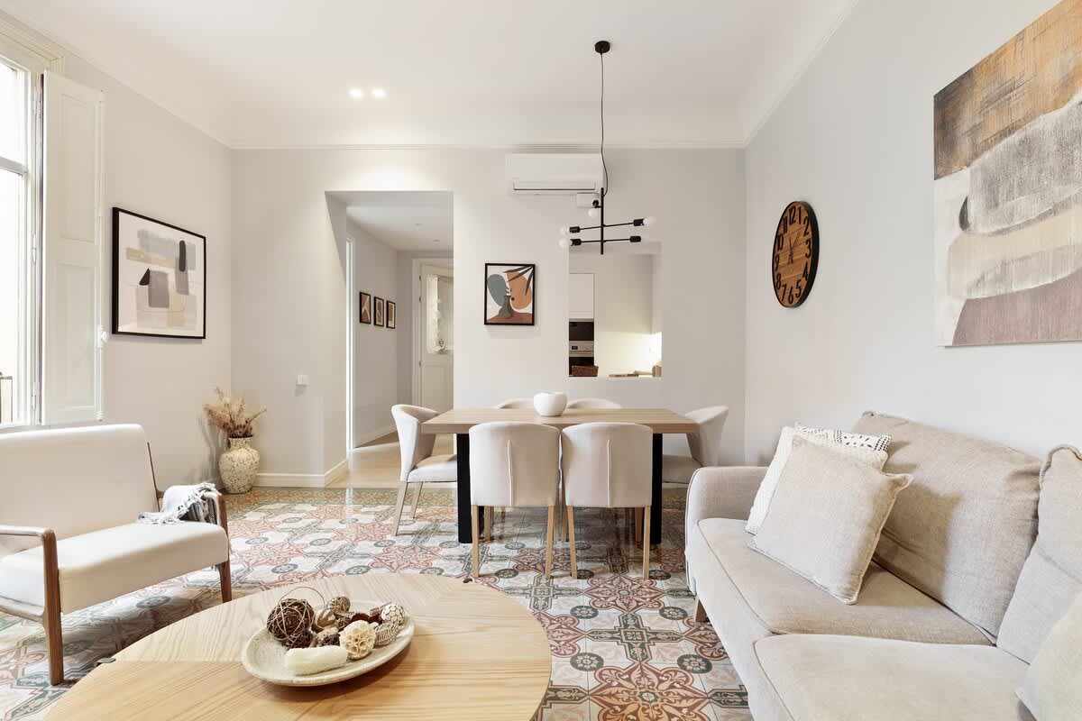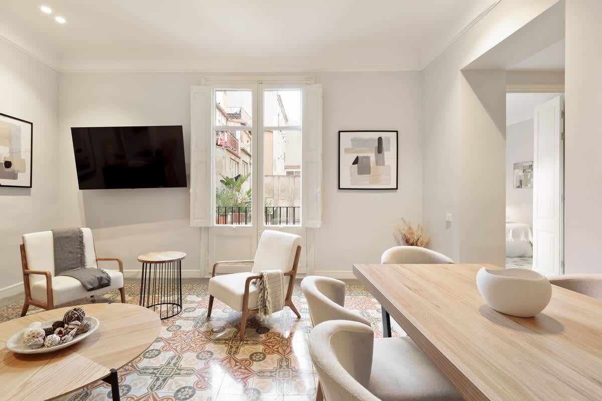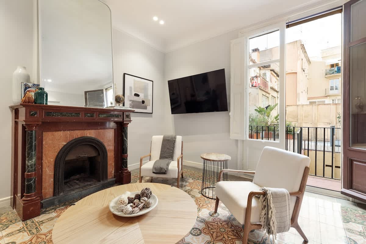 Elevate your visit to Barcelona with a stay in our newly renovated, 2-bedroom/2-bathroom apartment. Nestled on one of Barcelona's most charming yet serene streets, surrounded by quaint bakeries, chocolatiers, and cafés, our apartment offers an unparalleled experience. Housed within a historic building known for its notorious past residents, the property beautifully maintains its original modernist allure alongside characteristic charm, providing a unique backdrop to your stay.