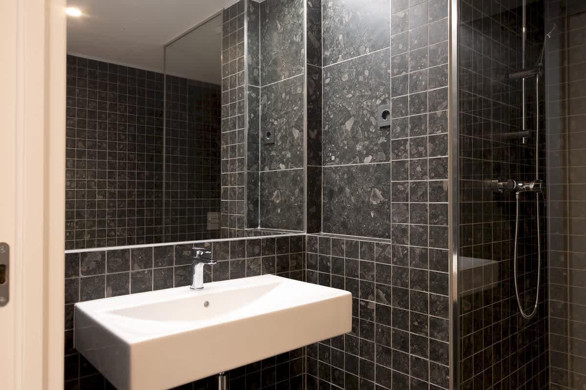 This apartment features two comfortable bedrooms, each with large windows that create a bright and serene ambiance. The bathroom is modern and elegant, equipped with high-quality amenities and a refreshing shower.