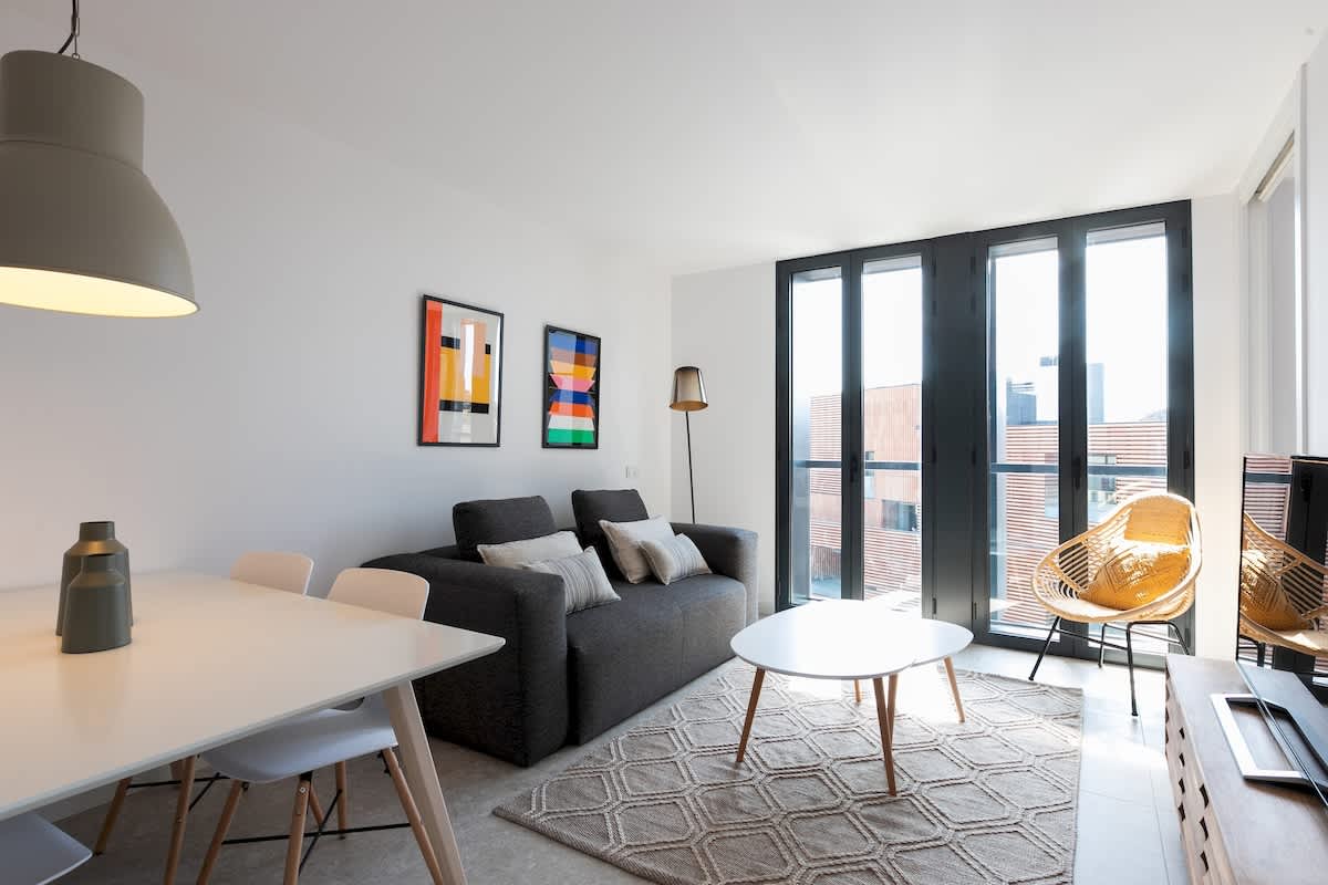 AVAILABLE FOR LEISURE RENTAL ONLY - Welcome to this beautiful new contemporary apartment located in the vibrant heart of Barcelona. Available for monthly rent only, this apartment offers a modern and stylish living space with abundant natural light and stunning design that combines comfort and functionality.