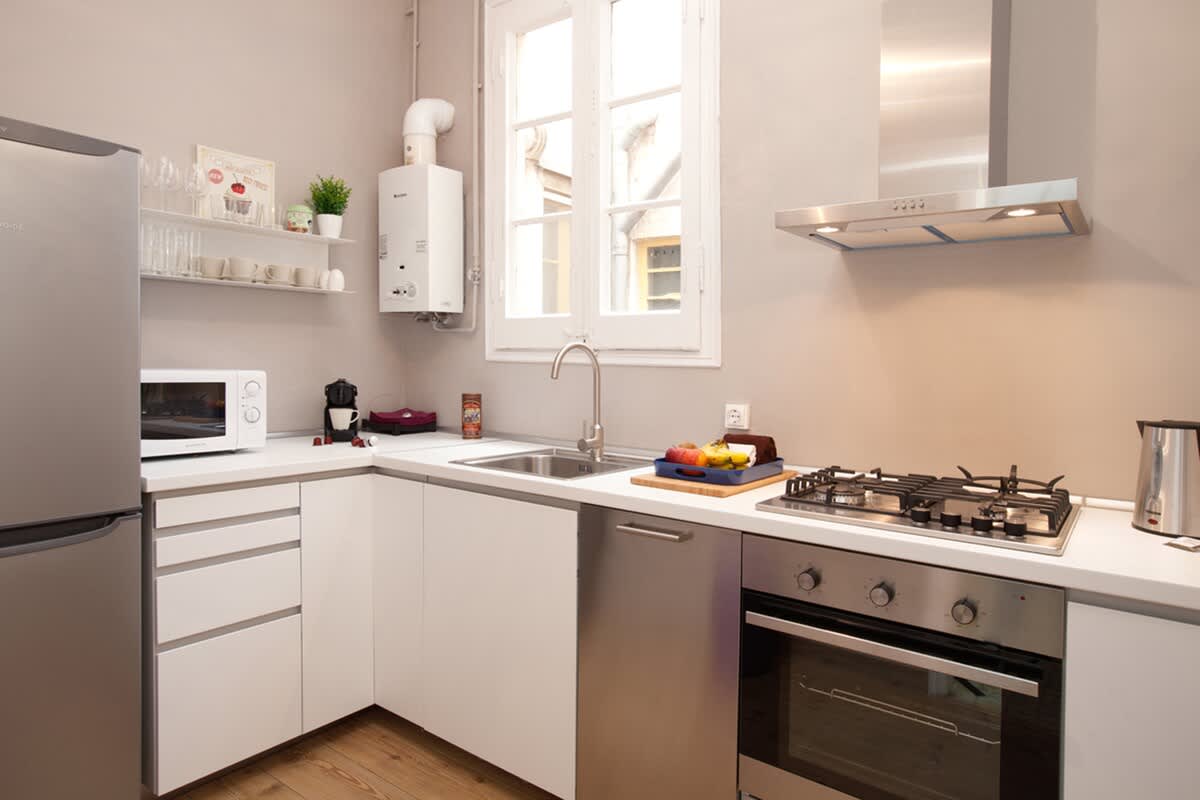 The kitchen is equipped with various appliances for your convenience. Follow the guidelines to use them properly.