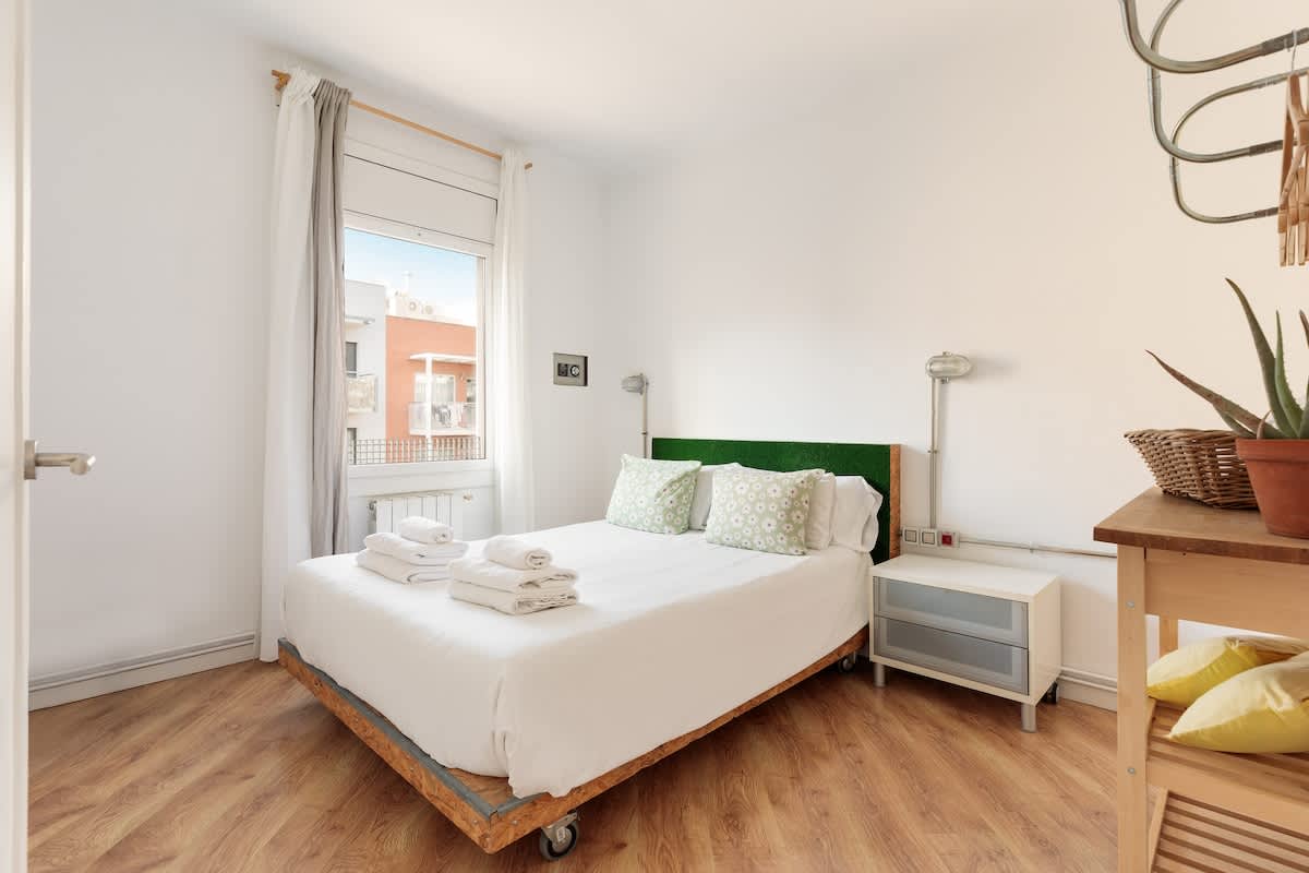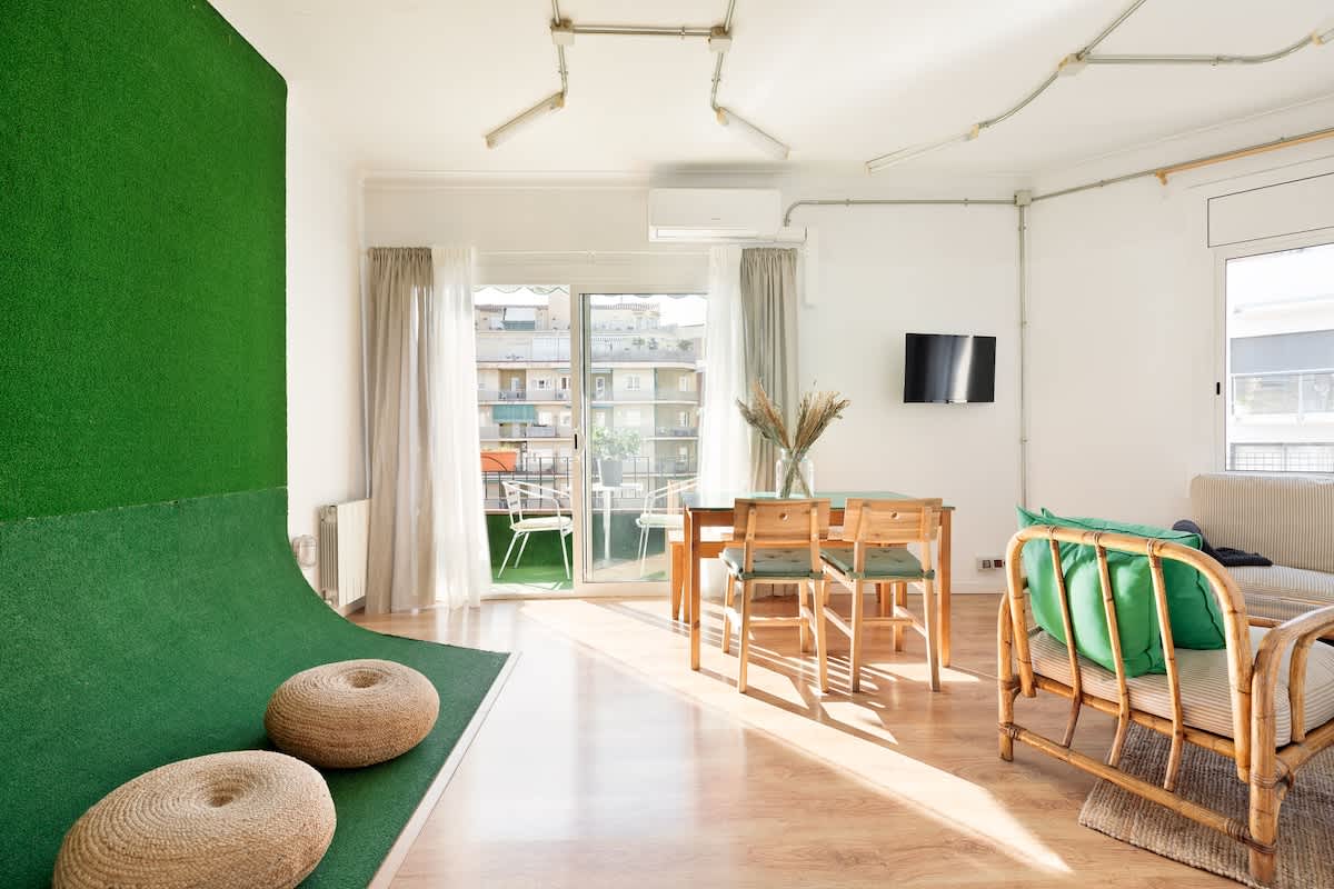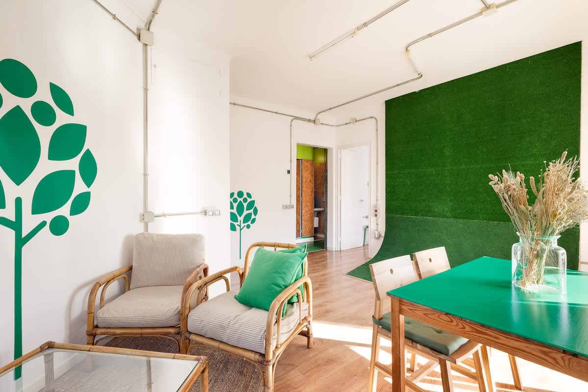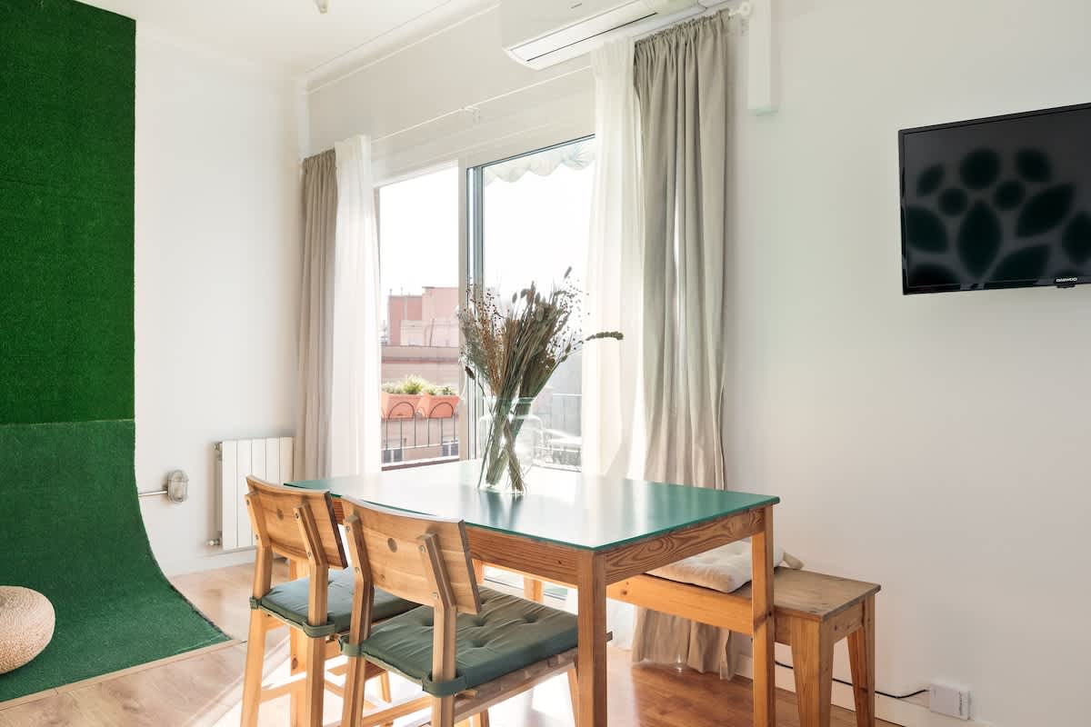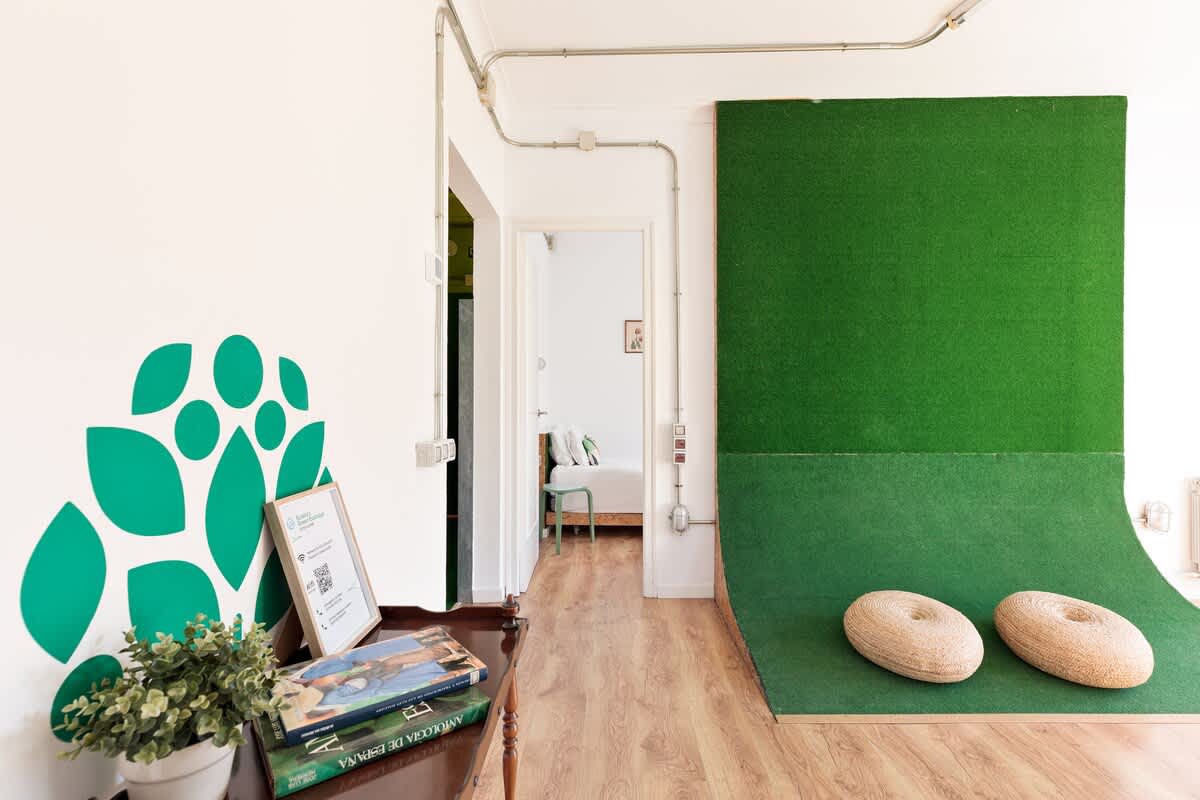 Welcome to Eulalia’s Green Eco-lodge, a sustainable place nestled in a vibrant residential neighborhood that perfectly balances tranquility and accessibility. Situated within the triangle formed by Gaudi's masterpiece, the Sagrada Familia, the iconic Hospital de Sant Pau (Europe's largest modernist complex), and the Estrella DAMM beer museum, our apartment offers a unique experience in the heart of Barcelona.
