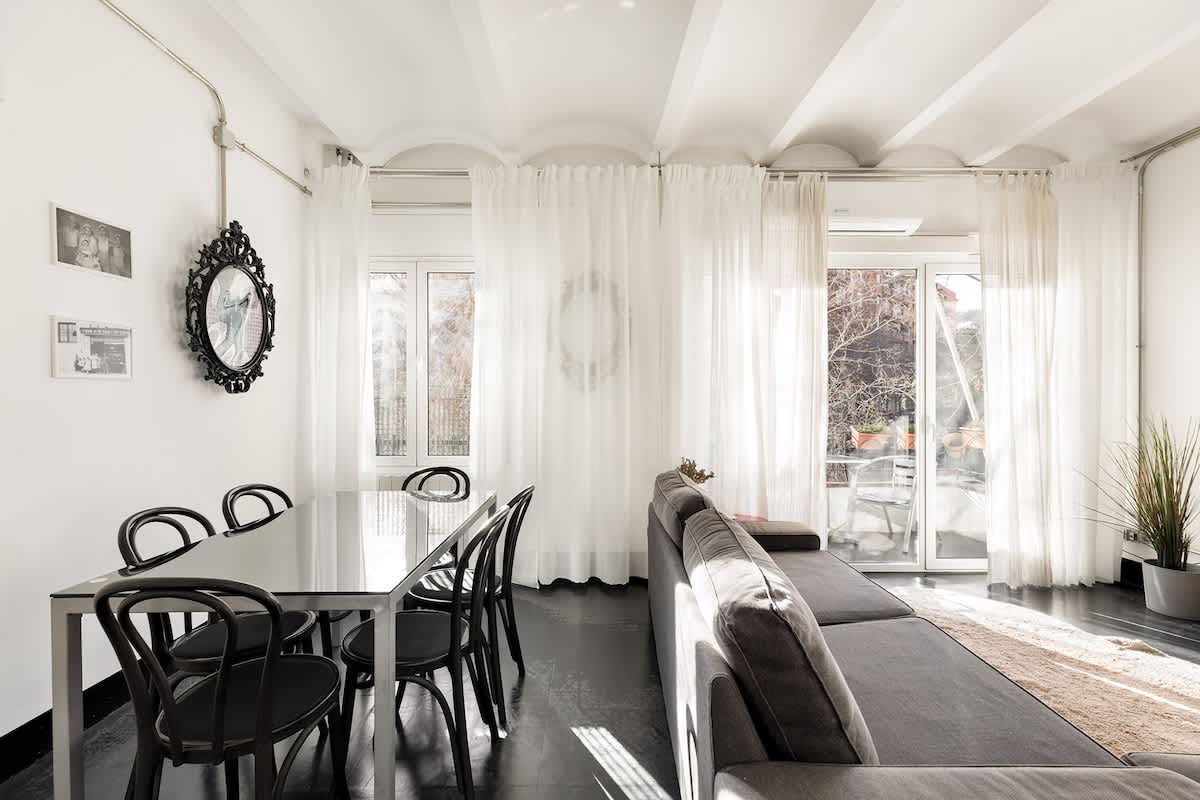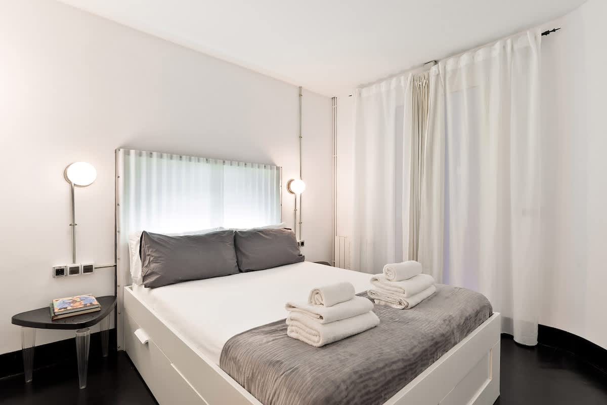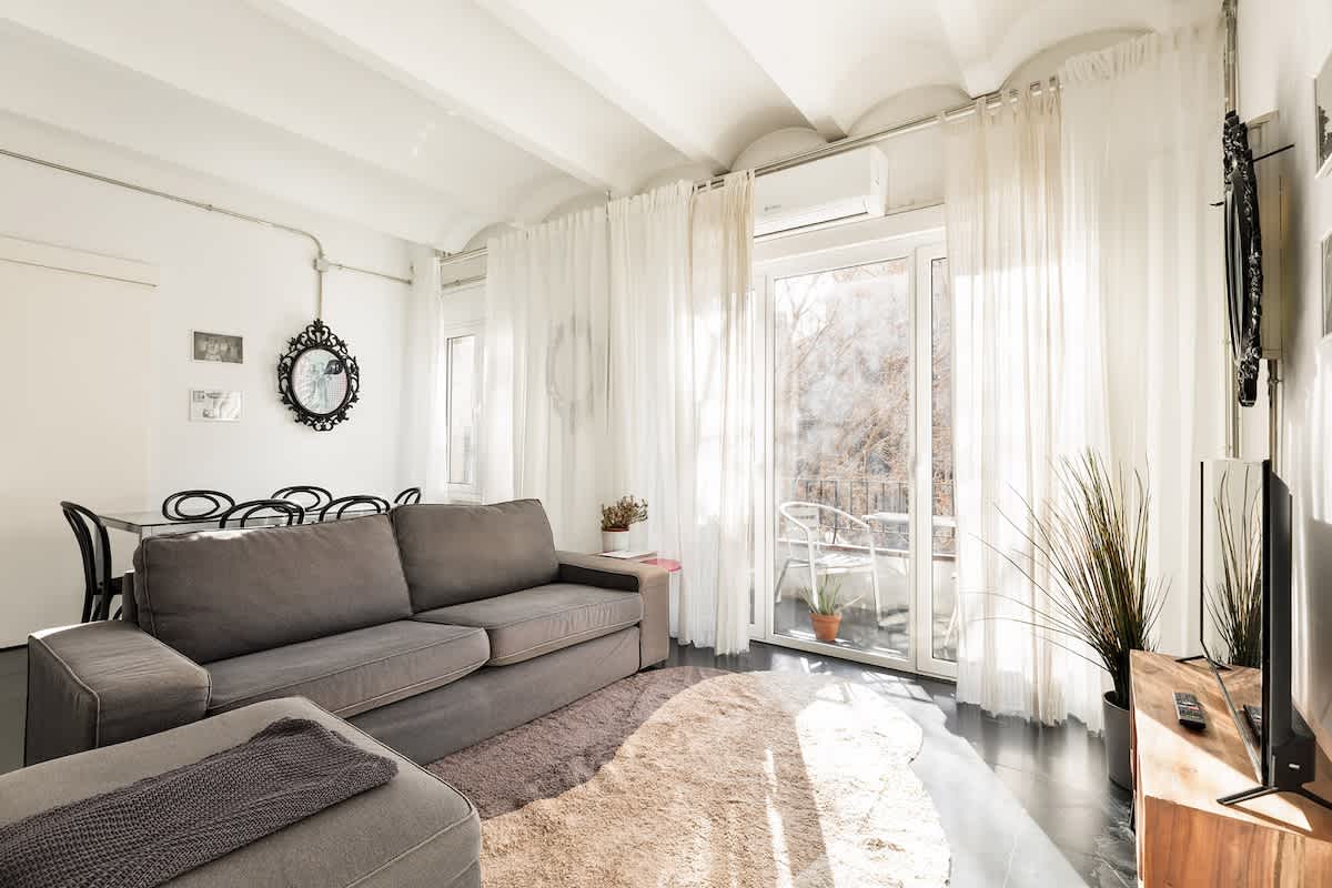 Discover the allure of this dynamic district, where historic architecture meets contemporary culture, crafting an enchanting atmosphere. You can find bus and metro stops really close: “Sant Pau” / “Dos de Maig”, right at your doorstep – you can even spot the metro from your balcony!