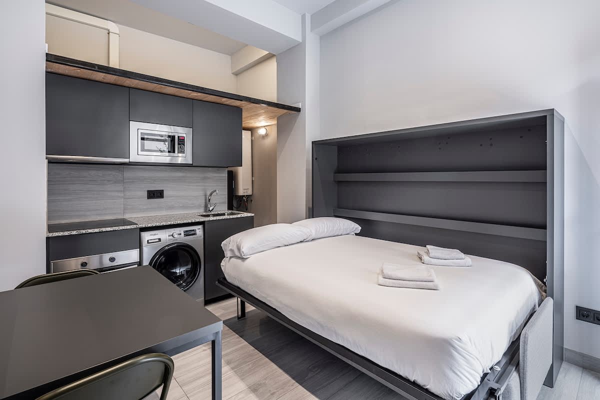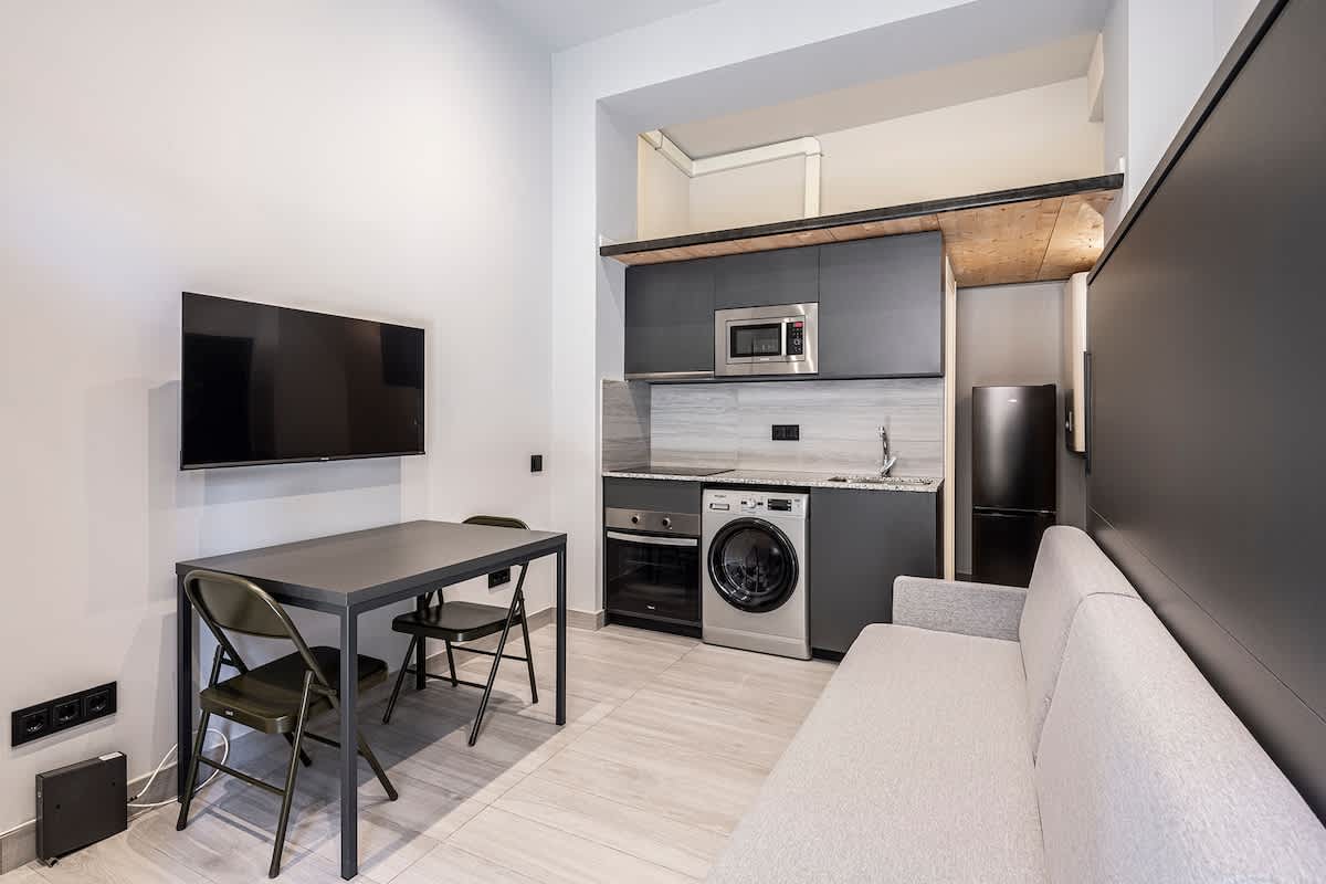 Welcome to this charming studio apartment located on the ground floor in the heart of Madrid, available for monthly rentals. This cozy and well-appointed space offers everything you need for a comfortable stay in the vibrant Spanish capital.