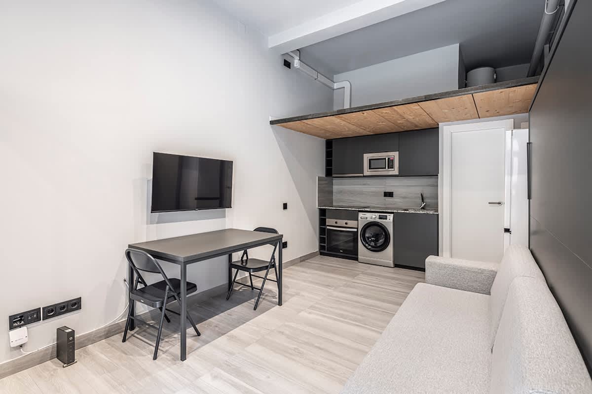 Welcome to this charming studio apartment located on the ground floor in the heart of Madrid, available for monthly rentals. This cozy and well-appointed space offers everything you need for a comfortable stay in the vibrant Spanish capital.