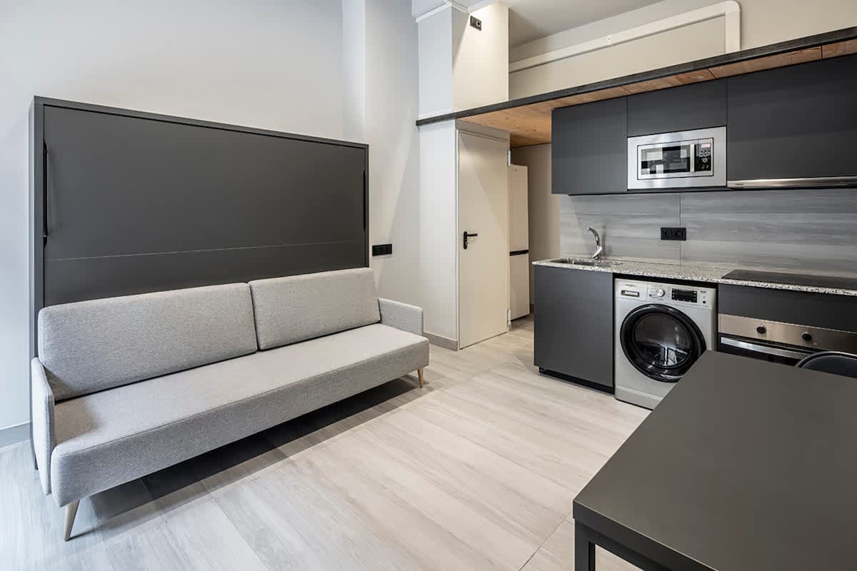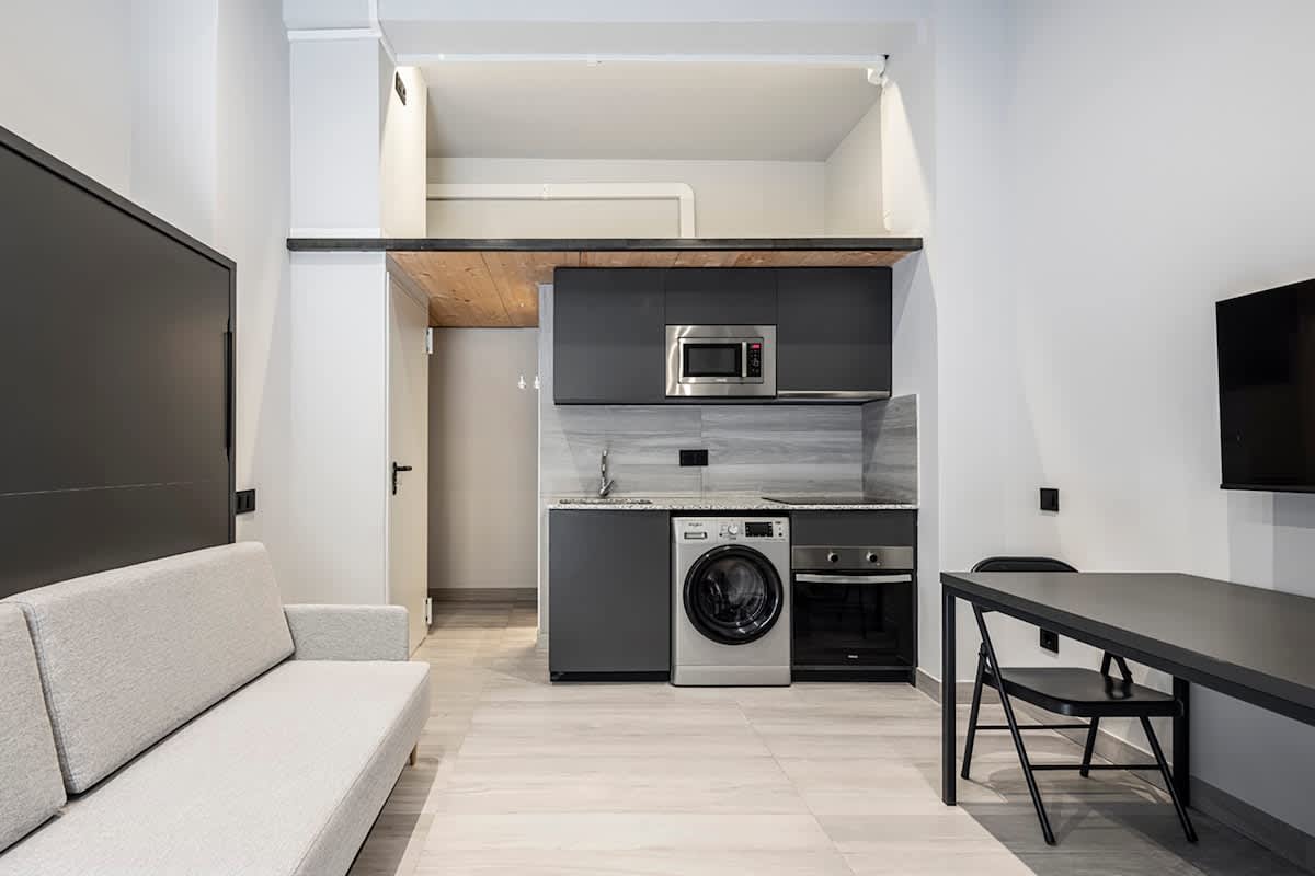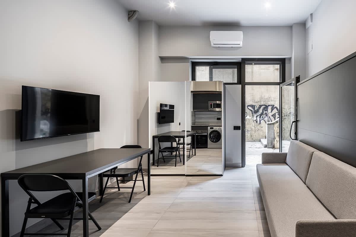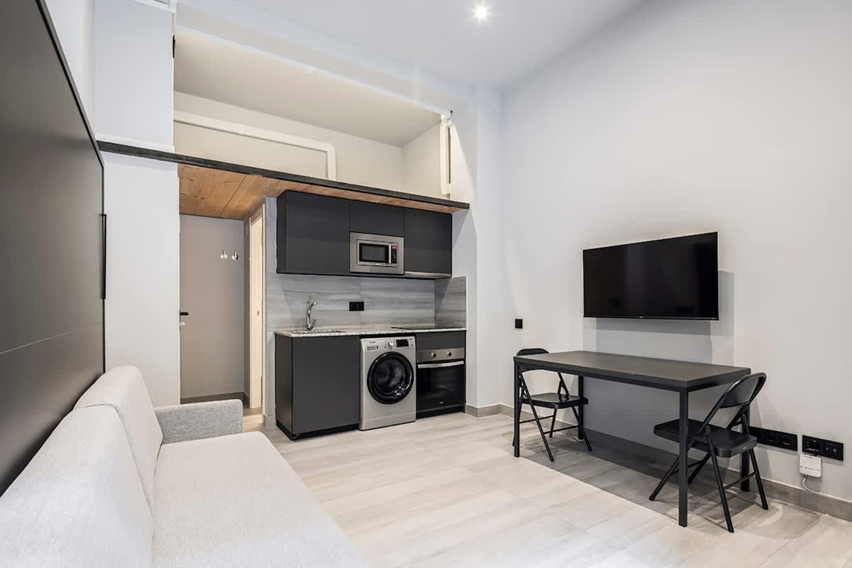 Welcome to this charming studio apartment located on the ground floor in the heart of Madrid, available for monthly rentals. This cozy and well-appointed space offers everything you need for a comfortable stay in the vibrant Spanish capital.