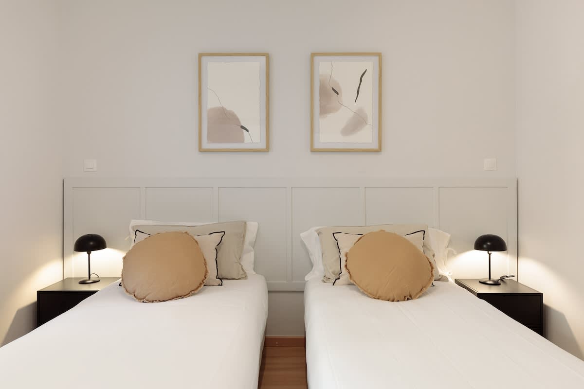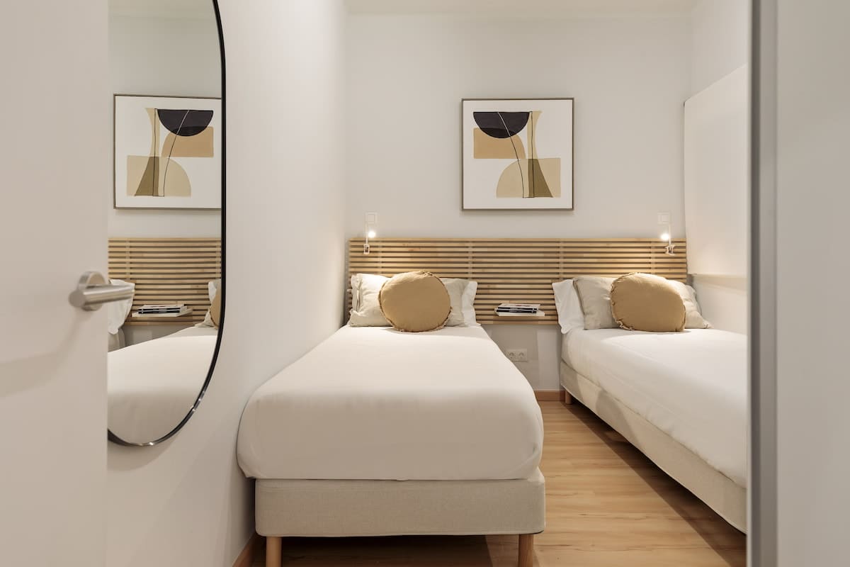 The apartment features a full bathroom and two bedrooms with flexible bed arrangements: two single beds that can be converted into doubles. By default, one room is set up with two single beds and the other with a double bed. If a different arrangement is required, it is MANDATORY to request it at least 24 hours in advance.