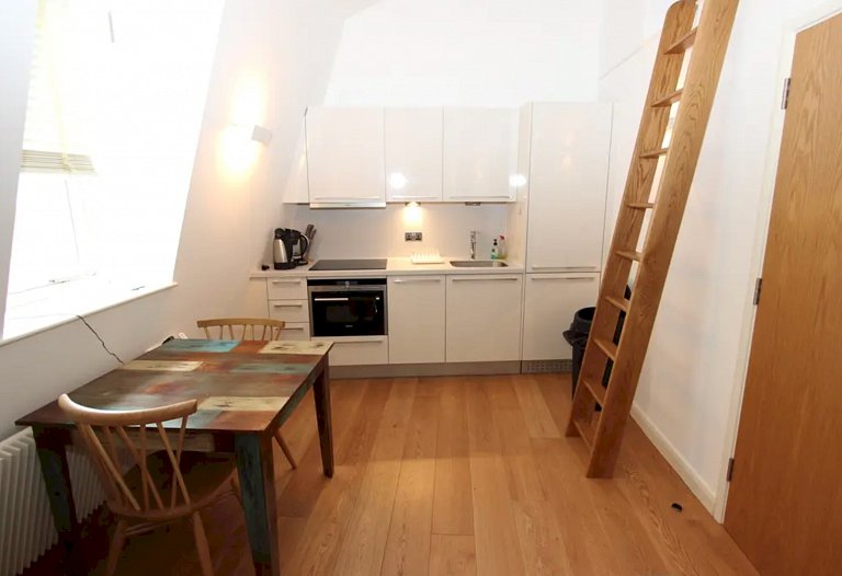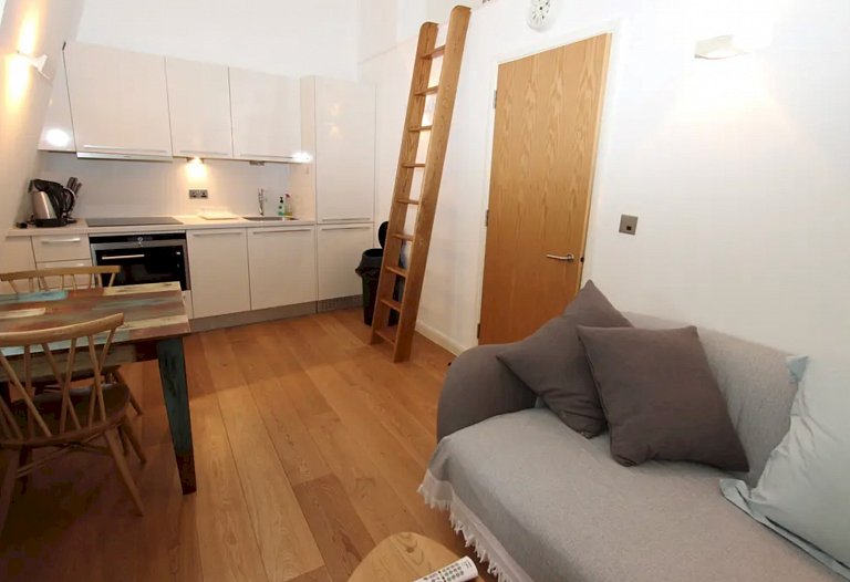 Relax in style in a prime location in central London. This popular and vibrant neighbourhood has so much to recommend it, not least it's world famous market. Walk easily from here around the West End and enjoy quick and easy transport links as well as a good bus service. LIVING ROOM With a simple and modern interior design, this contemporary one bedroom flat offers you all of the space and amenities to feel right at home in London! The living room features arched ceilings with two large windows, an extra-large wrap-around sofa, a mounted flat screen TV, dining table with seating for three, and a comfortable loft area with a single bed that is accessible by ladder. KITCHEN The living room leads into the open kitchen that has sleek all-white cabinetry, a fridge/freezer, coffeemaker, oven, toaster, and is illuminated with natural light from the living room. BEDROOM Your master bedroom has a double bed, two side tables, a double door closet with shelving for storage, and two windows allowing natural sunlight. BATHROOM The bathroom has bright white tiling, a walk-in shower, towel rack and a W/C. Towels will be provided for your stay. TRANSPORT Charing Cross station - Bakerloo & Northern Lines - zone 1. NOTE The flat is on the 3rd floor and is a walk-up - no lift. LOCALE