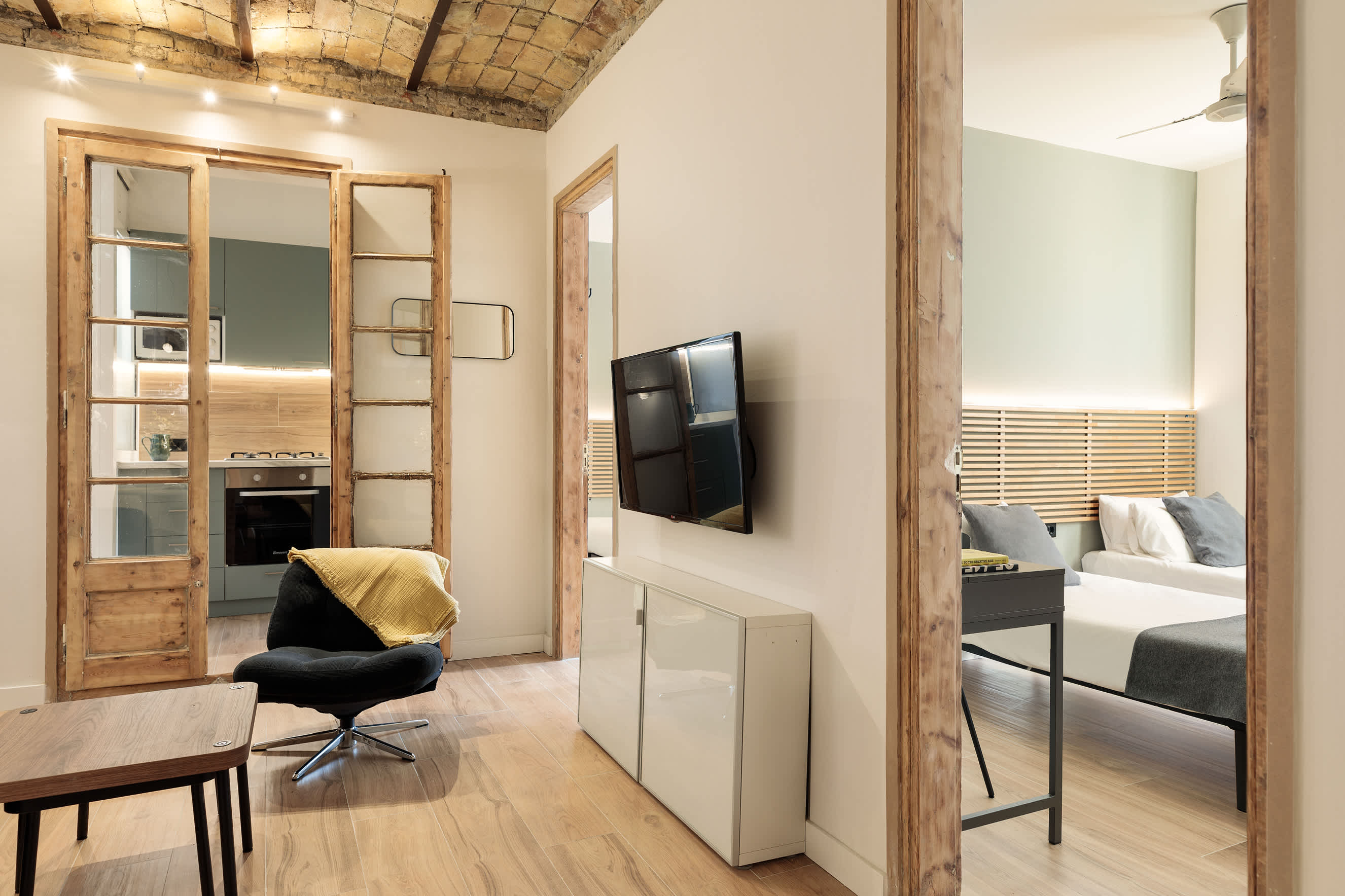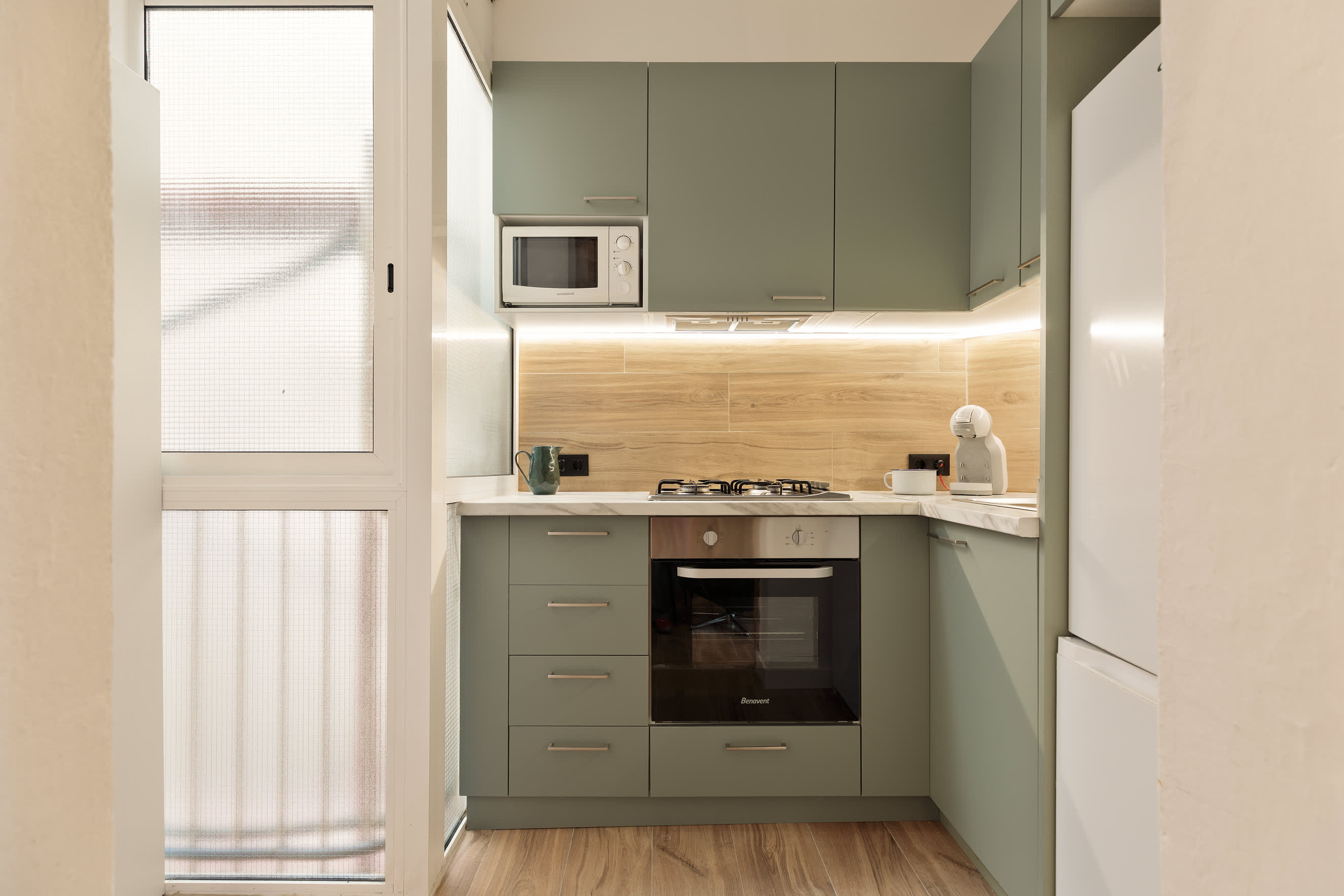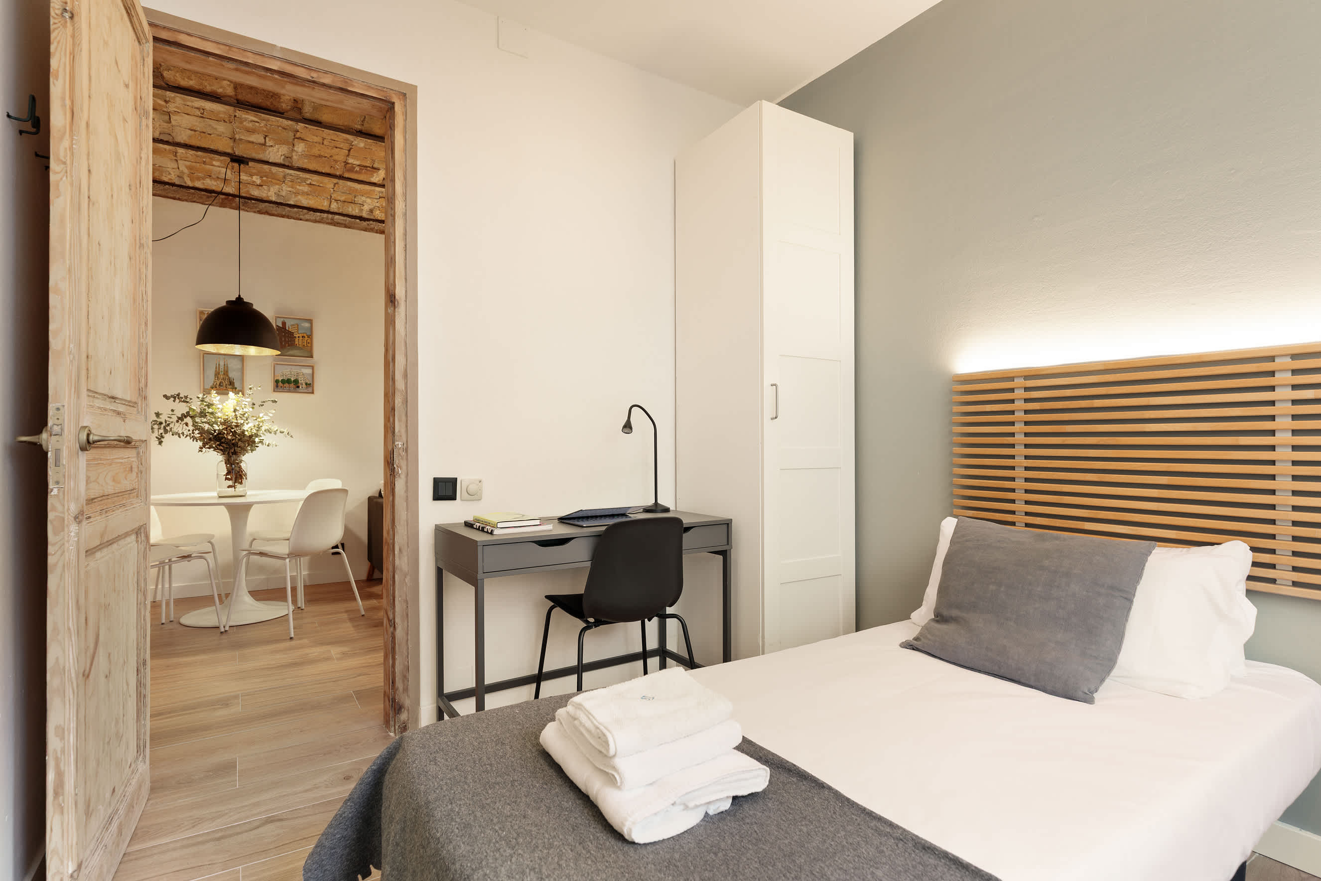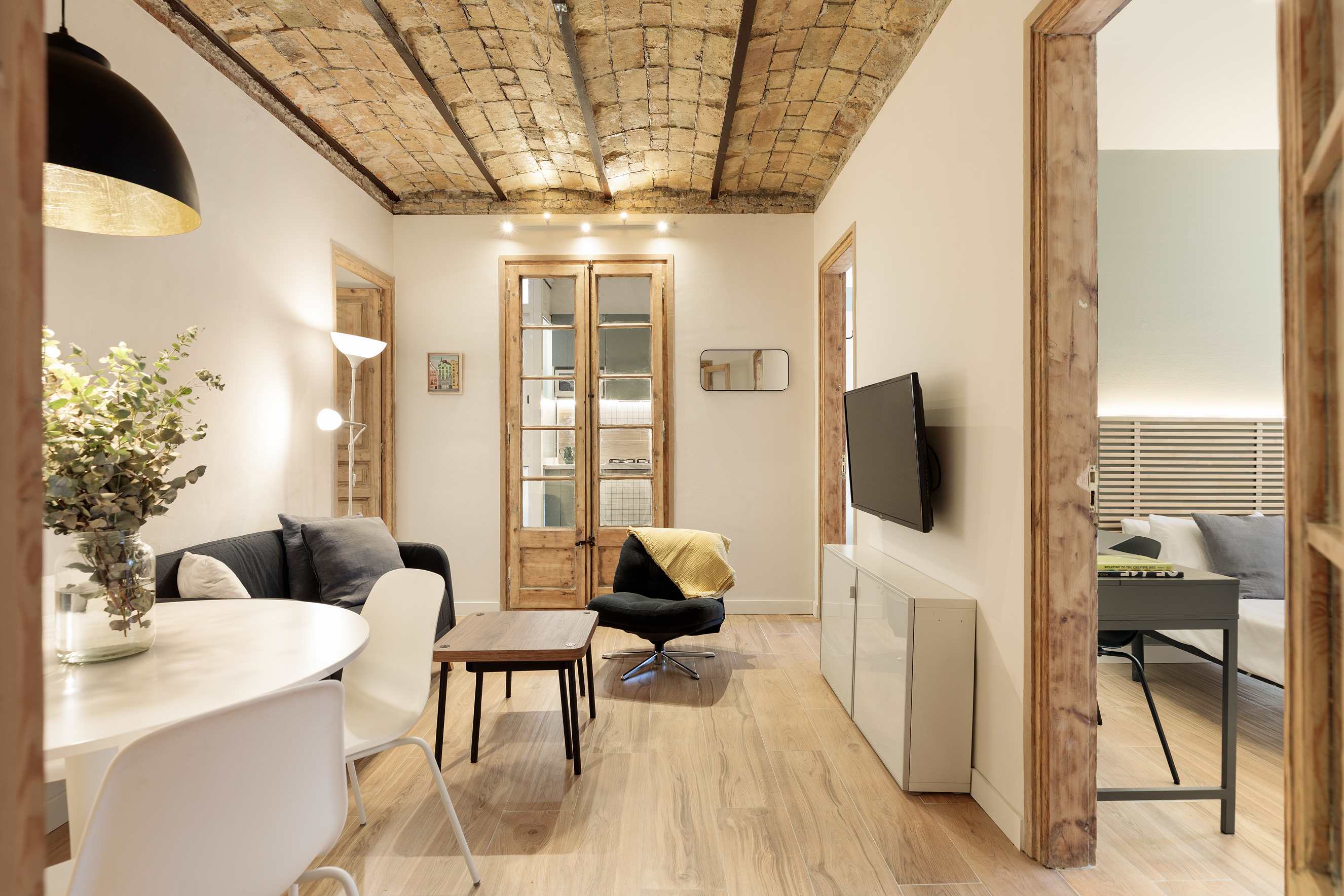 Welcome to Camp Nou Eco Apartment, a renovated and environmentally friendly space designed for sustainable living. Located near Spotify Camp Nou, this apartment offers a quiet retreat within the bustling city of Barcelona. The neighborhood is local and quiet, a perfect break from the busy pace of the city.