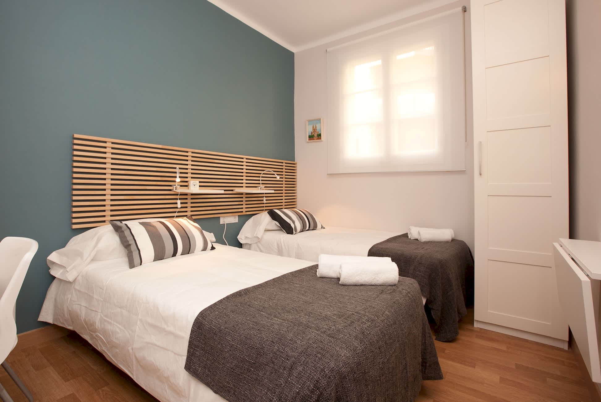 Welcome to the Ventura Plaja Apartments, a cozy and fully equipped space located just off Europe's longest shopping street. Ideal for groups, this accommodation comfortably hosts up to 6 guests with three bedrooms, each featuring twin beds. Situated on the fourth floor, please note that there is no elevator in the building. Located not too far from Spotify Camp Nou, this apartment offers a tranquil retreat within the bustling city of Barcelona. The neighborhood is local and peaceful—a perfect break from the city's busy pace.